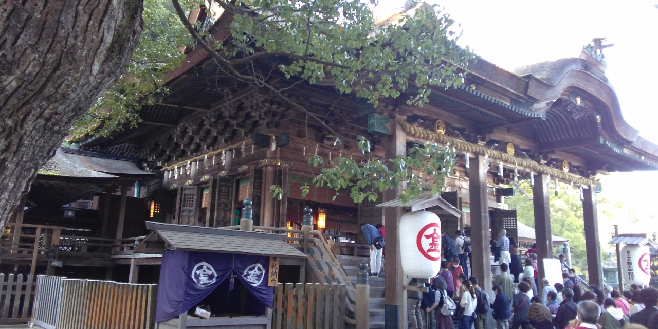 1368段の数多くの石段を上がって奥社に辿り着きました。規模は小さいですけれど、金刀比羅本教の教祖が祀られている神社です。だいぶ標高も上がって海抜400メートルを越えて自然が豊富なエリアです。木々の間から周辺の景色も堪能することもできます。何より奥社まで辿り着いたという達成感があります。ここまで来る人は多くはないみたいですけれど、最後までお参りできて良かったです。