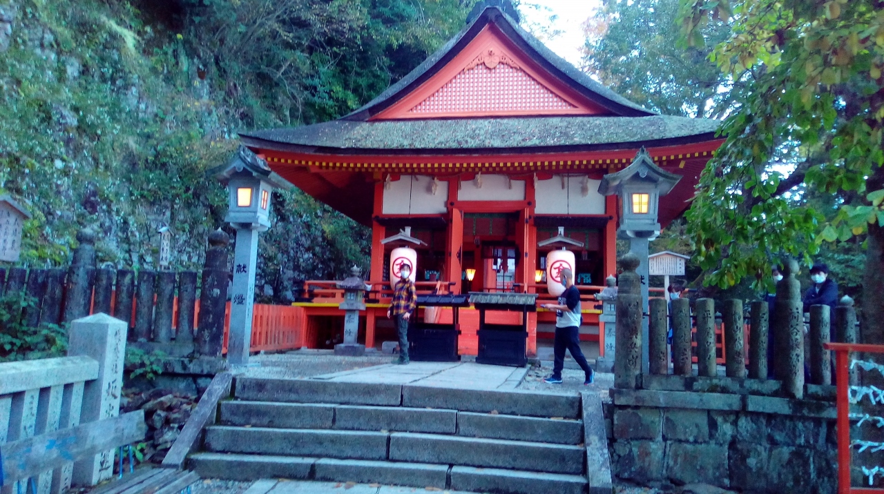 金刀比羅宮の御本宮から奥社に向かう参道の途中にある神社です。御祭神として、崇徳天皇とその恩母である待賢門院が祀られています。木々が豊富なエリアにあって、紅葉の木が沢山あるのです。ですから紅葉の季節になると、違った景色を堪能することができるのでしょうね。奥社までは、まだまだ石段が続きます。