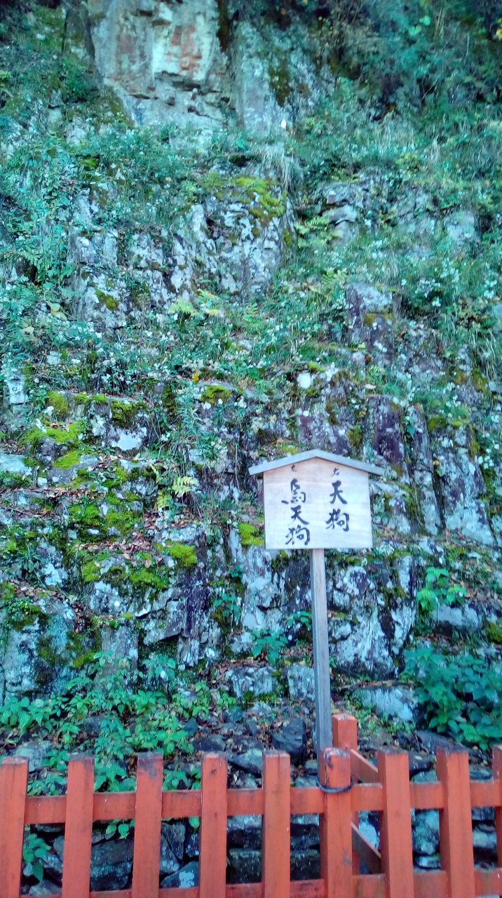 金刀比羅宮の参道の急な石段を上がって辿り着いた奥社の脇に岩がむき出しの讃岐岩質の急斜面があるのですが、これが威徳巖と呼ばれています。分かりにくいのですけれど、崖の上段に天狗とカラスの彫り物があります。看板があるので、そちらを目印にすると見つかると思います。崇徳天皇も参籠したと言われているようです。