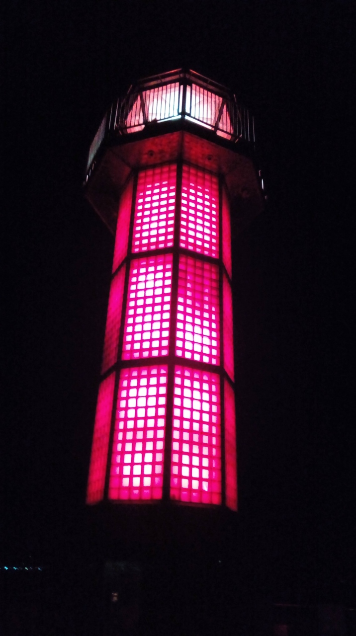 高松港の玉藻防波堤に最先端にある世界初のガラスの灯台で、せとしるべと呼ばれています。防波堤の先端なので、ちょっと距離がありますけれど、世界初とのことなので風が吹く中を歩いて見学に行きました。灯台なので昼間より夜に訪れるのがベストです。灯台だけあって、遠くからでも照らされている灯りが目立っています。灯台の間近まで行くことができます。釣りのスポットになっているみたいで、沢山の釣り人が夜にも関わらず居ました。