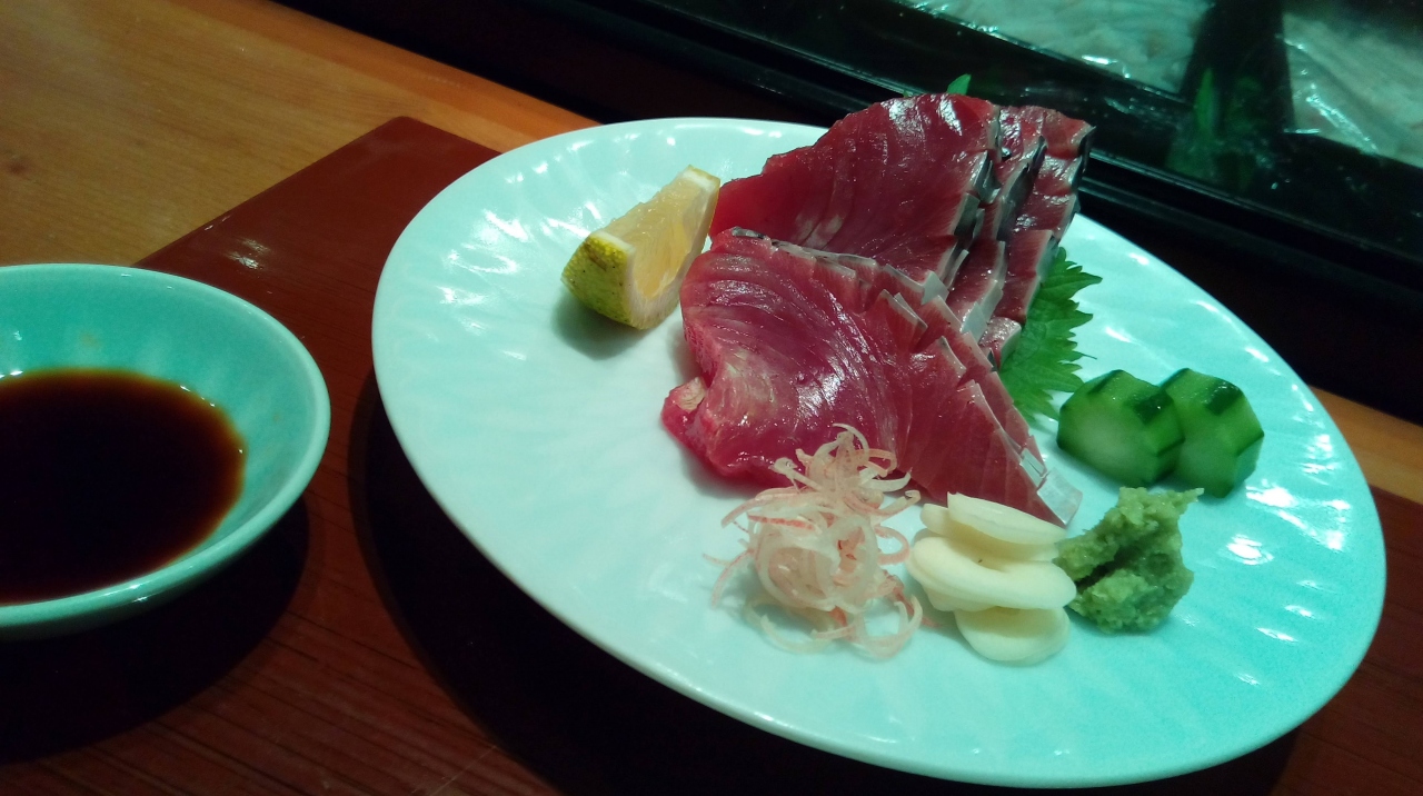 高知の夜の繁華街エリアの飲み屋さんが並んでいる一角にあるお店です。お店に入ると直ぐの場所にカウンター席があり、ちょっと高級感がある雰囲気のお店になっています。高知ですから、カツオのタタキを注文しました。タレで食べるタタキしか食べたことがなかったのですけれど、塩や皮つきなどが高知ではあるそうです。カツオのお腹の部位をハランボというみたいで、そちらも食べてみました。地元で食べると鮮度が抜群だと感じますね。落ち着いていて、丁寧な接客で食事を堪能することができました。お値段はそこそこですけれど、それだけの価値があると思います。