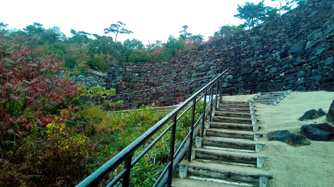 玉藻公園を散策していると立派な石垣を見ることができます。かつての天守閣の石垣を長年掛けて修復したようです。天守台に上がることができて、玉藻公園の中を見渡すことができるスポットになっています。こちらから眺めると高松城の構造が分かり易いのではないでしょうか。天守閣の再建計画もあるようなので、もし再建されたら再訪したいと思います。