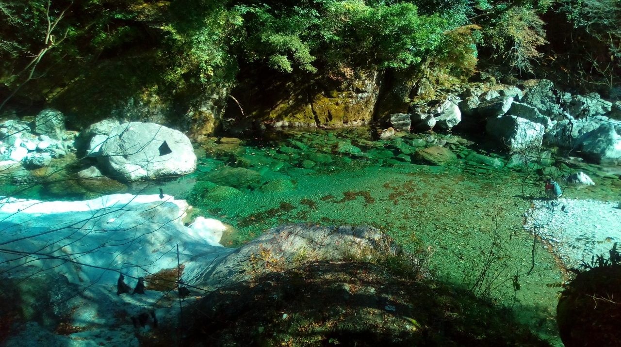 テレビ番組で紹介されていた仁淀ブルーの景色を見たくて安居渓谷に訪れました。他のエリアでも見ることができるみたいですけれど、色々な情報をチェックして安居渓谷を選択しました。高知市内から車で2時間くらいドライブして到着しました。道が空いていたので順調なドライブでした。駐車場からしばらく歩くと川沿いに下りれる道があり、綺麗にブルーに輝いている景色を眺めることができます。石の上を歩きながら2時間くらい散策しましたけれど、ずっと綺麗な川や自然の景色を堪能することができるのです。四季折々の変化も楽しめそうなスポットです。