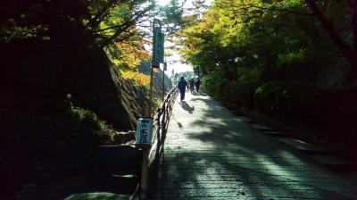 御本宮まで何とか到着したのですけれど、頑張って奥社まで向かうことにしました。御本宮から暫く進んで行くと、小さいですけれど、小さな石造りの鳥居があって、銅板の屋根の常盤神社が現われます。奥社に参拝する人は必ず通るはずです。武勇の神様が祀られているみたいです。まだまだ奥社までは距離がありますけれど、周辺は自然に囲まれていて、木々の景色がキレイです。