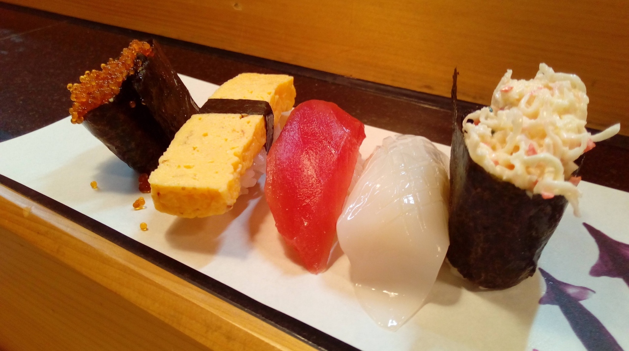 宿泊しているホテルの近くが繁華街、商店街になっていて、その賑やかな商店街の一角にあります。独りでの滞在になってしまって、食事できるお店も限られてしまうのですが、このお店は入り口付近にカウンター席があるので、おひとり様でもOKという雰囲気がいいのです。夜の7時までハッピーアワーになっていて、ドリンクが半額で提供されているのです。お寿司も単品で注文できて価格もリーズナブルなのです。おつまみメニューも充実しているので、居酒屋感覚で利用することができるのです。人気店みたいで、地元の人で大混雑していて、料理が出てくるのが遅かったですけれど、スタッフの方の対応も良くて気持ちよく飲むことができました。しばらく通いたいお店です。