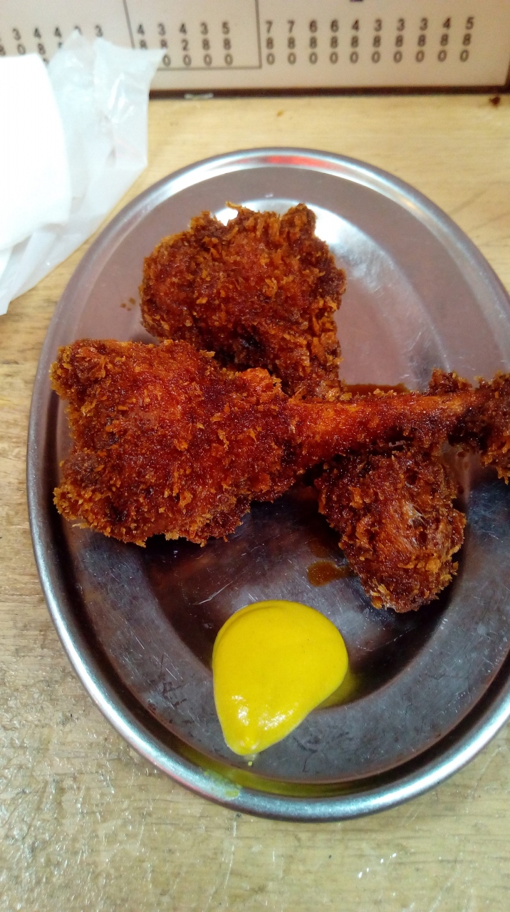 上野のアメ横近くの飲み屋さんが集中している賑やかエリアにあるお店です。飲み屋さんが並んでいて競争が激しいエリアなので、比較的安く飲めるお店が多いのです。外食チェーンを展開している会社が運営しているみたいですけれど、まだお店の数は多くないと思います。メニューの内容は、普通の居酒屋メニューという感じで、お値段も安めですけれど、付近の飲み屋さんと比べると普通でしょうか。鶏肉のチューリップがお勧めのような感じがしたので、注文してみました。お腹の具合によって本数を選べるのがいいですね。揚げたての鶏肉にソースがかけられています。濃いめの味がお酒のつまみになります。カウンター席があるので、ひとりでも気軽に入ることができます。