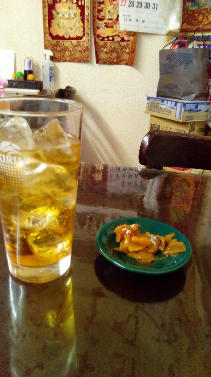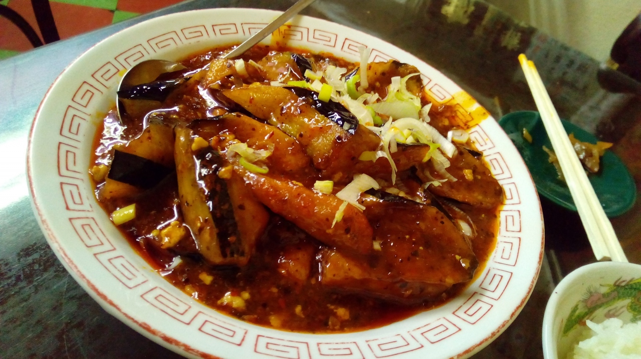 今日はマーボーナスを注文しました。それに昼飲みもできるのでウーロンハイも注文です。
