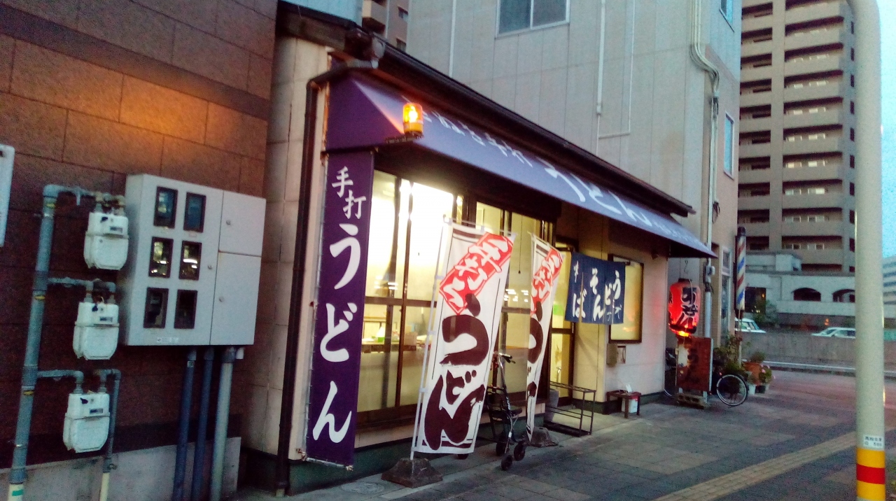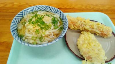 ネットなどでチェックして、よく紹介されている人気の讃岐うどん屋さんです。繁華街の商店街が集中しているエリアから離れた住宅街にあるお店で、早朝から営業していて地元の人で賑わっています。庶民的な食堂という感じの雰囲気になっていて、定番のセルフ方式になっています。カウンターでうどんと揚げ物の個数を伝えて会計をします。かけうどん小を注文すると丼ぶりに入ったうどんが出てきます。それを自分でお湯に入れて温め、おつゆを入れて、ネギや生姜をのせて完成です。カウンターには揚げ物が並んでいて、どれも美味しそうなのと、サイズが巨大なのです。ちくわとレンコンを選択したのですけれど、こんなに大きなちくわ、レンコンを食べるのは初めてです。特にレンコンは歯ごたえもあって、これだけでお腹一杯になりそうです。うどんのおつゆの塩気が強かったですけれど、天ぷらのおつゆにはいい感じでした。かけうどん小、ちくわ、レンコンの天ぷらで450円くらいの激安価格でした。