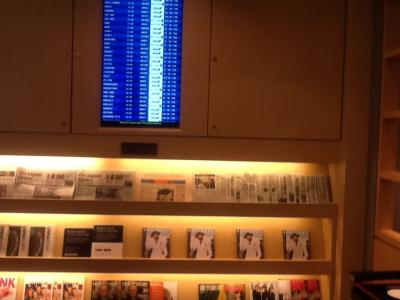 搭乗までの時間に余裕があったので寄り道をしました。まずはシャワールームを利用です。アメリカ系の航空会社なので期待はしていませんでしたが、普通にシャワーを浴びれました。ラウンジ内は日本人より外国人の方が多いような感じですね。飲み物は、日本らしく焼酎などがあり、食事はアメリカの航空会社らしい感じで洋風の軽い食事という感じがしました。新聞や週刊誌などもあり、ANAのラウンジより静かで落ち着いていました。