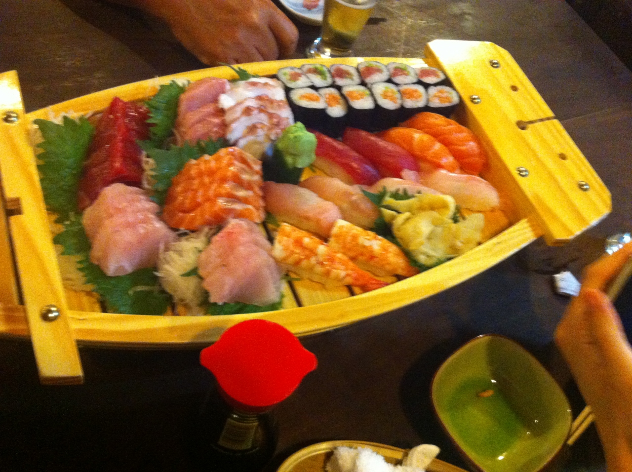 地下鉄のリベルダージから徒歩で行くことができます。人気のお店で、それほど広くないので心配な人は予約した方がいいと思います。同じ場所で40年以上も営業している老舗で沖縄料理を出すのです。お店を入ると右側にカウンター席があって、左側にテーブル席が並んでいます。メニューは沖縄料理がメインですが、天ぷら、お刺身、お寿司などもあります。私が頼んだのは、刺身と寿司の盛り合わせで3人か4人でシェアするのにいいと思います。海が近いので魚介類は新鮮なのです。〆は沖縄そばです。一人前では多すぎるので2人でシェアです。ちゃんと2人用に小さな器に分けてくれます。ブラジルに居る感じがしません。料理の質は高いです。