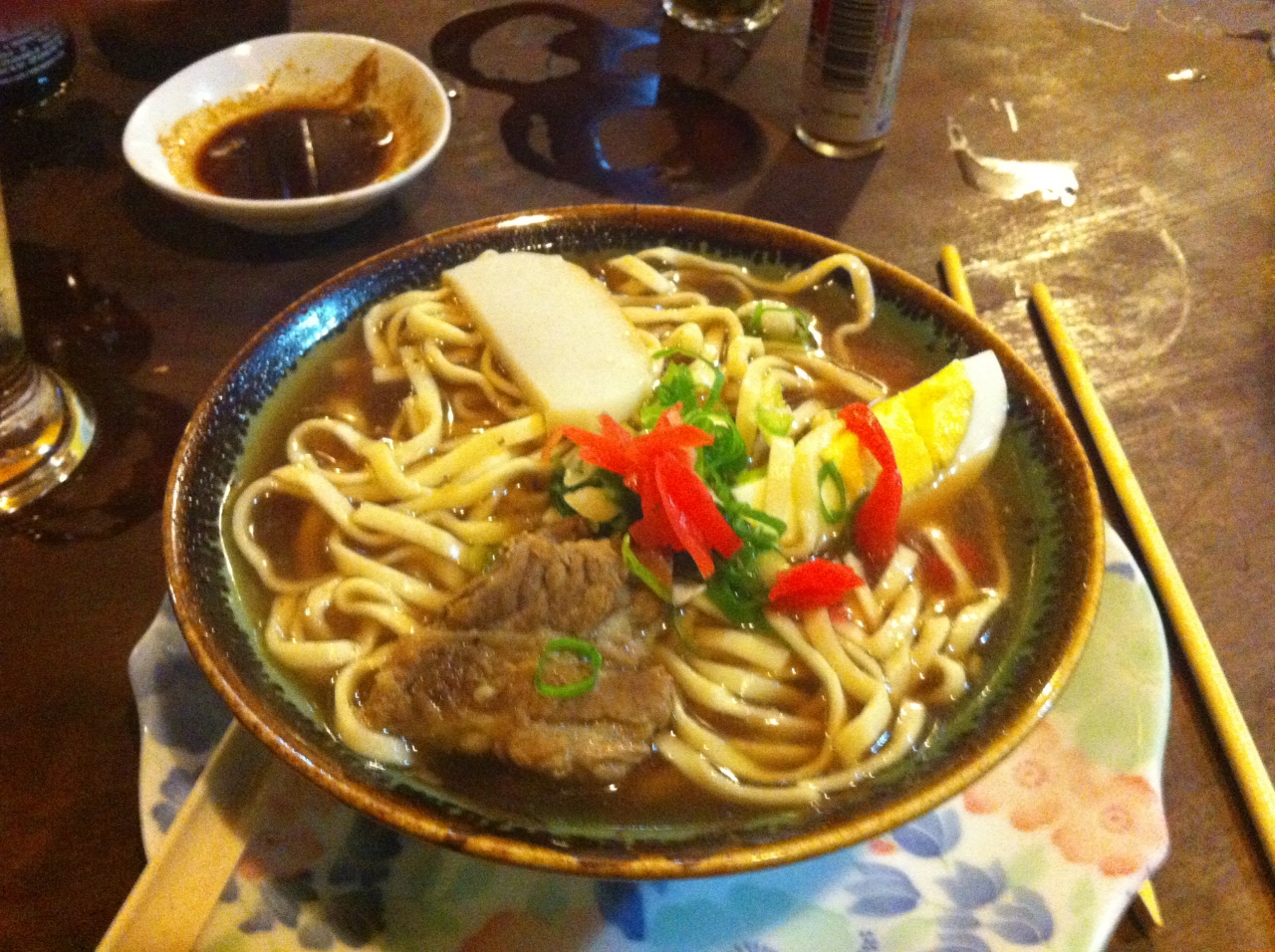 沖縄料理のお店です。なぜブラジルということになりますが、ブラジルには沖縄出身者が多いのです。こちらのお店は30年程前から定期的に訪れていて、同じ店主が頑張って運営していて、私みたいな観光客の癒しの場となっています。日本でいうと大衆酒場という感じの雰囲気の店内で、メニューは沖縄そばや豚を使った沖縄料理以外にお寿司、お刺身にチャーハンなどの庶民的なメニューもあります。カウンター席もあって、独りでも気軽に利用できます。ここは日本といった感じですよ。