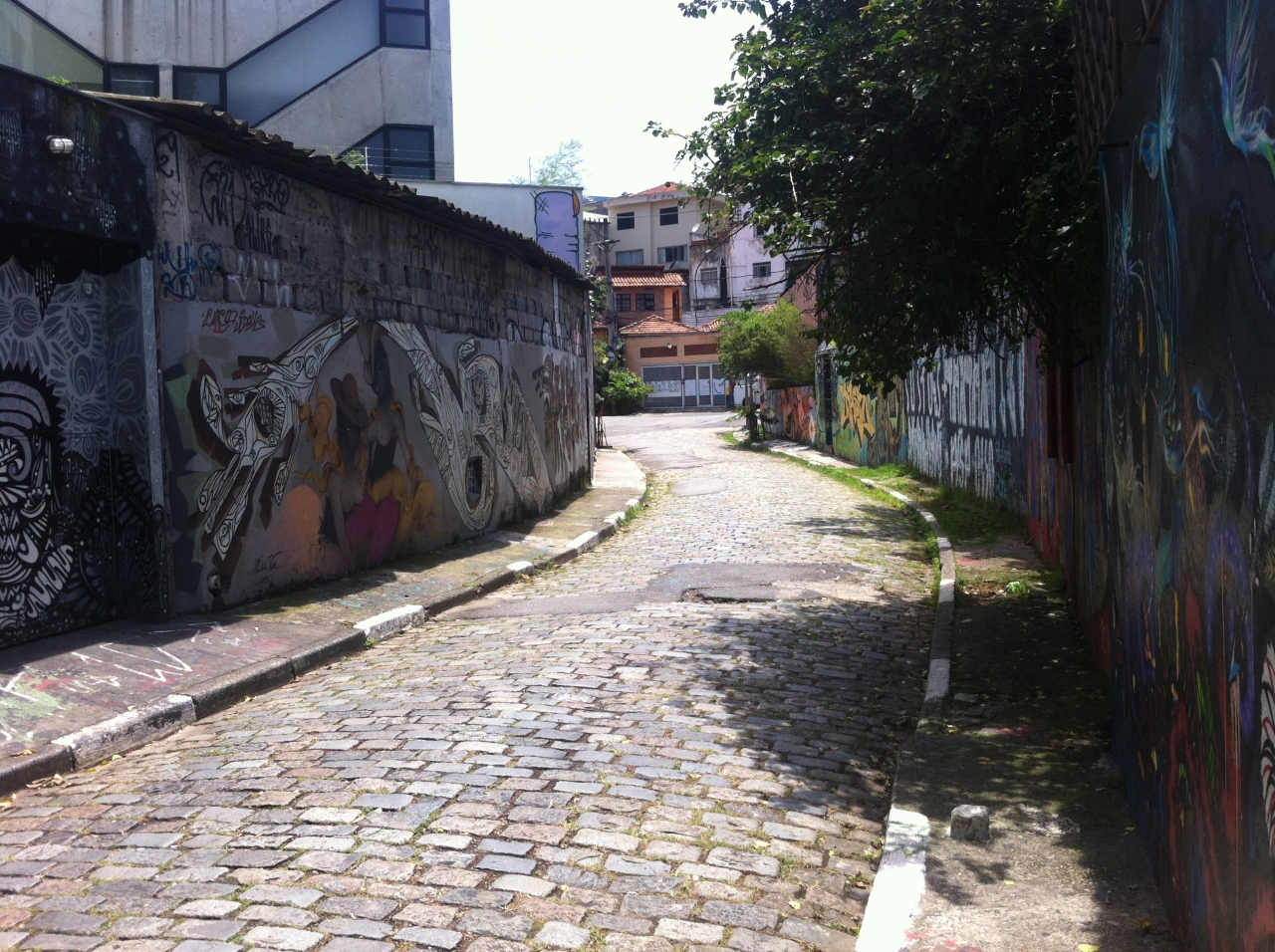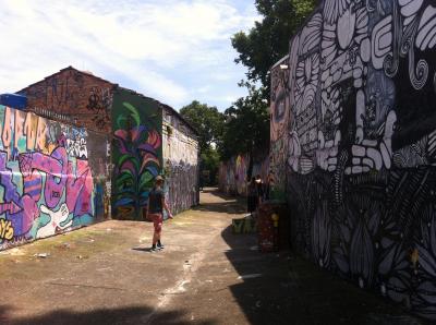 ヴィラマダレーナという地区にあります。近くに地下鉄の駅もあります。近所は洒落たカフェやバーがあって夜になると賑やかになります。また、普通の住宅も沢山あるエリアです。狭い路地ですが、壁際に沢山の絵が描かれています。人通りが少なくて、独りだと行くのに勇気がいります。治安は大丈夫とはいえ、場所によって怪しい雰囲気です。思ったより広い範囲に描かれているの見ごたえはありますよ。