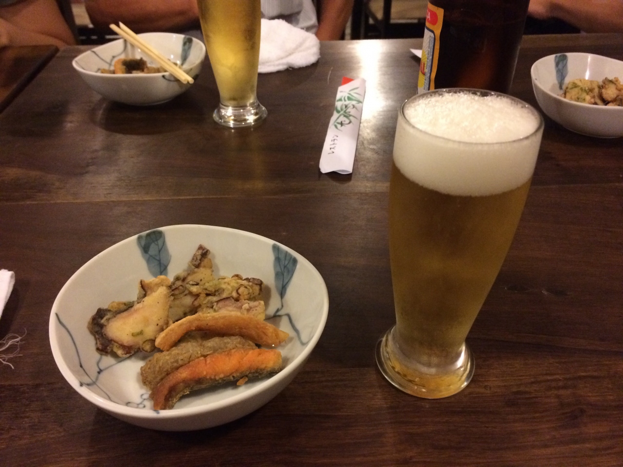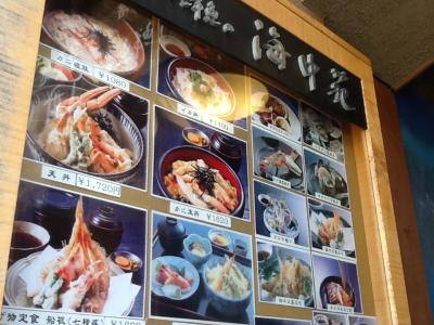 城崎温泉駅から宿に向かう途中にあったので、立ち寄ることにしました。海が近いエリアなので魚介類が期待できると思ったのです。店頭のメニューを見るだけでも、これはいけるという感じになります。普通のメニュー以外に、その日のおすすめメニュー、お刺身系が多いですけれど、聞いたことがない名前のお魚があるのにビックリです。魚は新鮮ですし、天ぷらも美味しかったですよ。もうちょっとお値段が安ければいいのですが。やはり観光地プライスでしょうか。