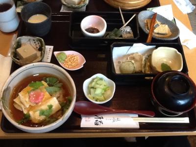 嵐山を観光している際に、たまたまお店の前を通り掛かりメニューを見たところ、京都らしい感じがしたので立ち寄ることにしました。店内は和風、京都という感じがしました。色々な料理を食べたかったのでセットメニューを注文しました。出てきた料理は京都という感じで盛り付け、バランスも上品だと思います。お味は観光客相手なので普通という感じでしたが、意外にボリュームがあったのでお腹いっぱいになりました。観光地の食事処としてはいい感じでしたよ。立地もいいですし。