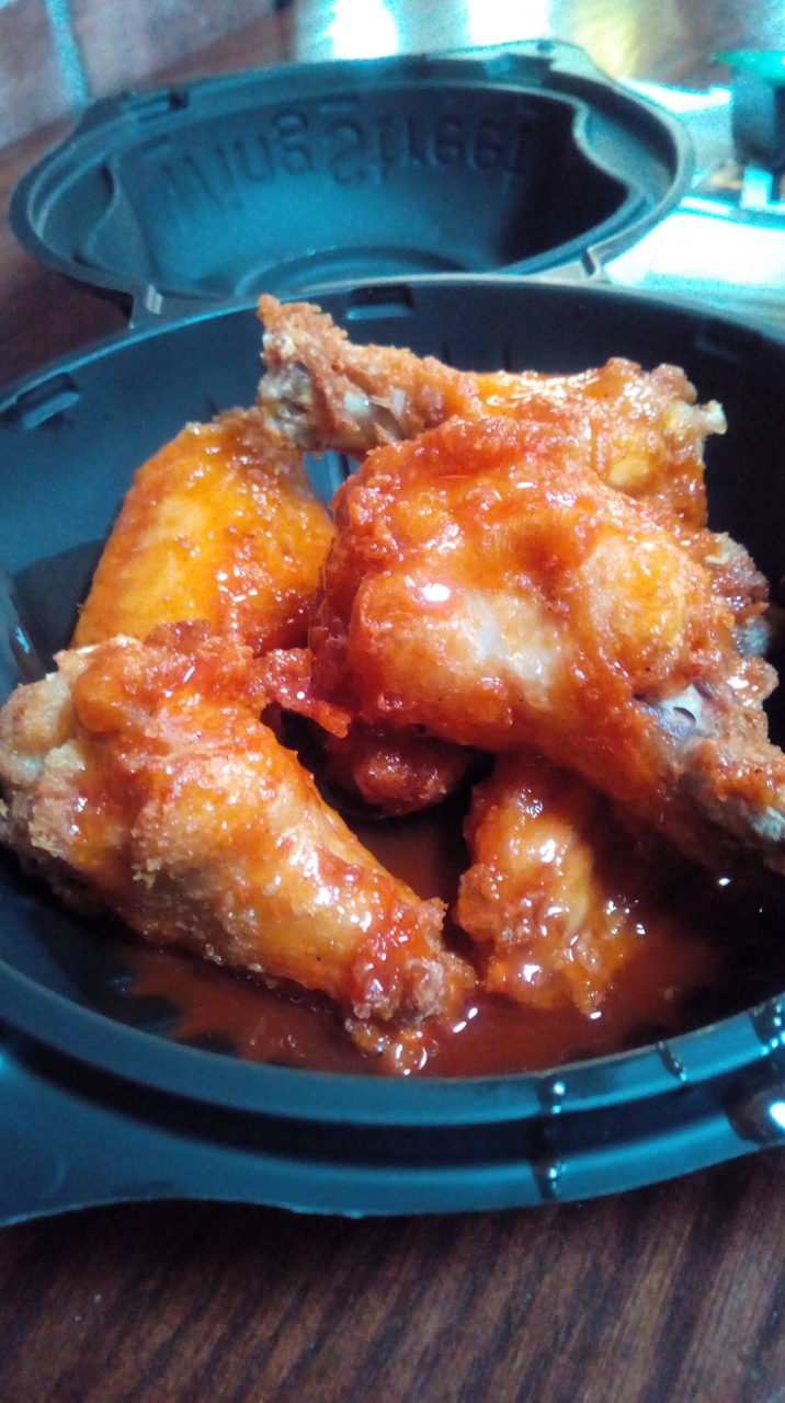 アメリカに到着して、次の便まで6時間もあったので、閑散としている空港内をブラブラしていました。コロナの影響もあって、休業しているお店ばかりでしたが、こちらのお店が開いていたので入ってみました。有名なピザのチェーン店ですので、ピザが中心のメニューですけれど、鶏の手羽の揚げた物を注文しました。から揚げに独特のソースが絡められているもので、お酒のおつまみに合う料理でした。ビール二杯にから揚げで5500円という空港価格でした。