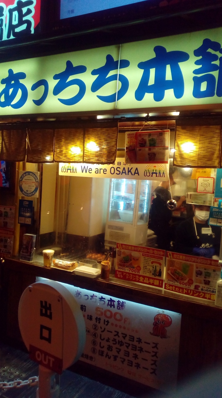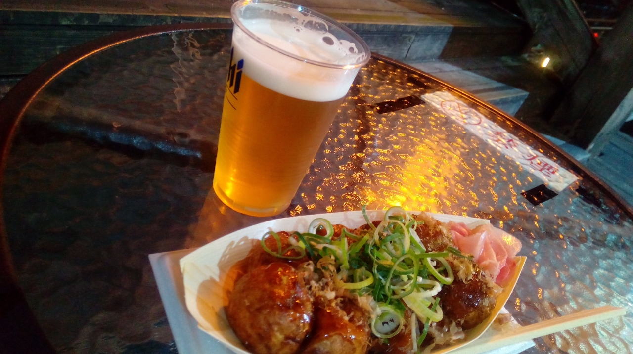 大阪の人気の繁華街の道頓堀エリアの道頓堀川沿いにあるたこ焼き屋さんです。大阪らしい雰囲気のお店になっていて、たこ焼きも普通のソースだけではなくて、何種類もあるのが大阪らしいですね。シンプルに普通のたこ焼きを注文です。もちろん、ビールも注文ですけれど、セットで注文すると割引になるのが嬉しいですね。店内ではなくて、お店の前にテーブルが2つあったので、そちらに腰掛けて、道頓堀の夜景を見ながら食べました。熱々のたこ焼きは最高です。本場、大阪なのでクオリティが安定しています。
