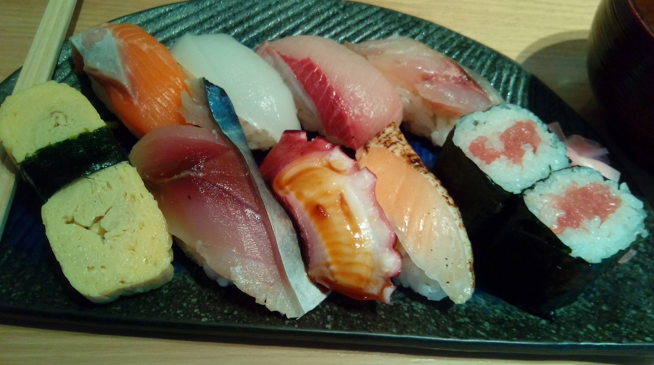 大阪の繁華街の梅田駅の近くにある数多くの商店街の一角にあるお寿司屋さんです。付近を散策していた時にランチタイムの看板を見つけて入ってみました。限られたスペースの店内のカウンターに案内されました。ランチタイムのお得な価格の握りずしを注文しましたけれど、シャリが美味しくてクオリティーの高いお寿司でした。700円で、このお寿司が食べれるなんて信じられないです。多分、夜の時間帯はそれなりのお値段になるのではないでしょうか。ついつい飲み過ぎてしまい、追加でおつまみを注文してしまいました。