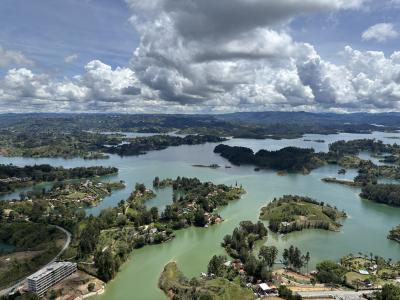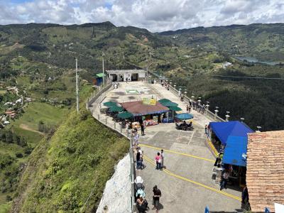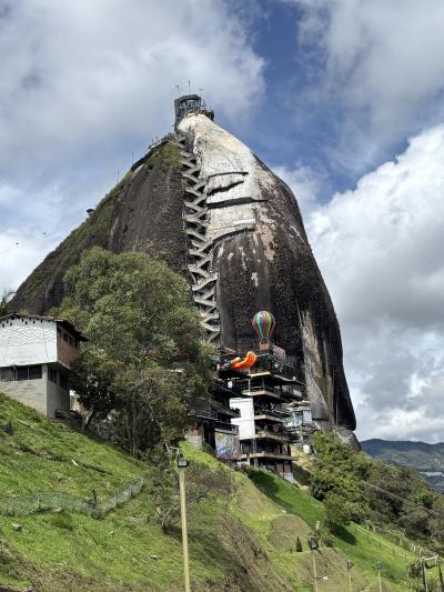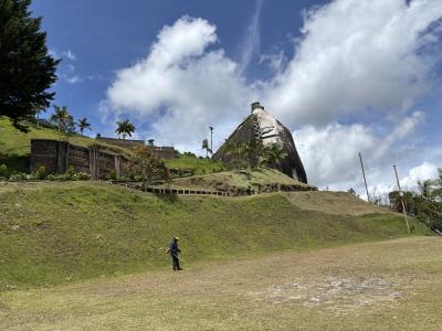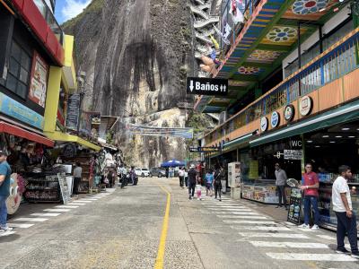 コロンビア第二の都市、メデジンからバスを利用して行くことができます。メデジンの北のバスターミナルからバスが出ていて、交通状態にもよりますけれど、2時間弱で到着しました。下車した後に裏手の階段を上がって行くと目的地の巨大な岩が見えてきます。完全に観光地化されていて、岩の前にレストラン、ギフトショップが並んでいます。入場料を払って岩を登ることになりますけれど、休憩しながら上がれば、きつい行程ではありません。岩の上にも売店などがあり、付近の景色を眺めることができるのです。日本の江の島という感じの気軽に行ける観光地です。