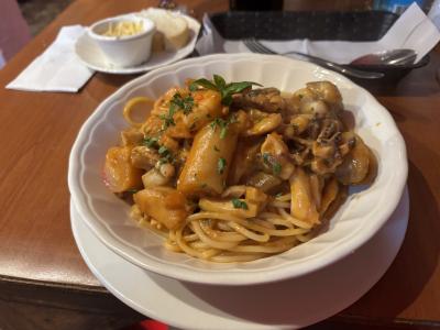 カルタヘナの旧市街の要塞の中ではないですけれど、観光客に人気のエリアのレストランが沢山並んでいるストリートにあるイタリアンのレストランです。コロンビア料理に飽きてきたので、利用することにしました。こじんまりとしたスペースの店内で、半分は天井があるようですけれど、他の半分のエリアは屋根がないエリアなので、雨が多いカルタヘナですから、チェックして陣取った方がいいと思います。何せ店内が暗いので、分からないのです。メニューの内容は定番のピザ、パスタの種類が多くて、少しだけコロンビア料理がありました。ピザを食べましたけれど、イタリアのピザとは違いますけれど、生地が薄めで美味しかったです。このレストランには後日再訪してシーフートパスタを食べましたけれど、ボリュームは満足。なぜかカニカマが多め、味が濃いめでした。ワインを飲みながら、ゆったりと食事することができました。完全に観光客向けのレストランで、店頭にメニュー、価格が提示されているので、安心して入ることができます。