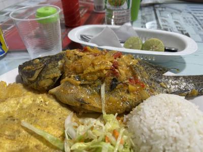 観光客に人気のレストランが沢山並んでいるストリートにあるのですけれど、地元の方で大人気になっています。ですから、早めかランチタイムを過ぎた時間帯に行った方が、ゆったりと食事することができます。地元の大衆食堂という感じの雰囲気になっていて、早めに行ったのですけれど、途中から満席というか、全ての椅子が埋まっている感じなので、普通に相席ということになります。ちゃんと英語のメニューもあります。料理は完全にコロンビア料理ですが、お魚が新鮮で美味しかったです。地元の味を堪能するのに最適なレストランです。
