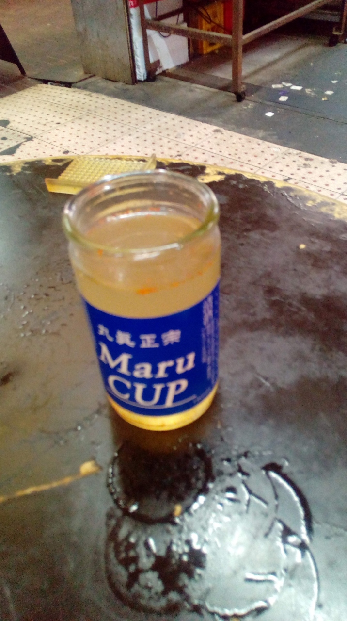 ポイントは、ワンカップのお酒が残り少なくなったら、おでんの汁を入れてもらって飲むのです。