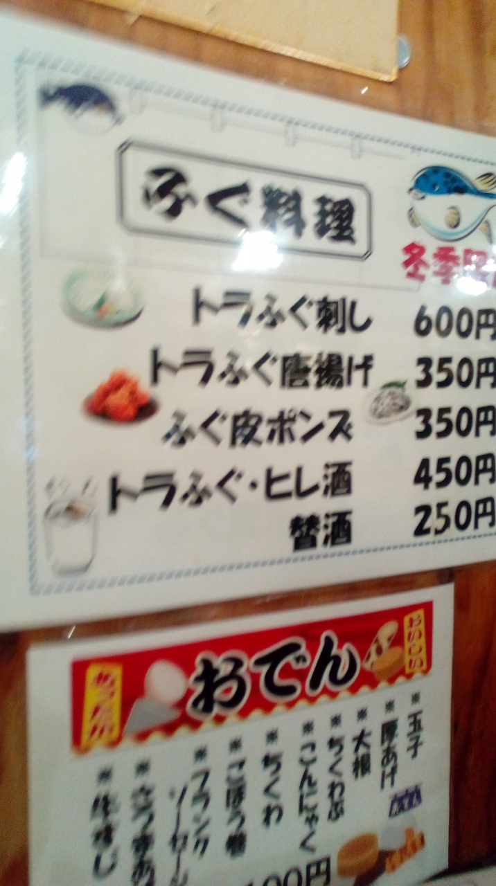 庶民的なお店で、ふぐが食べれるなんてビックリですね。
