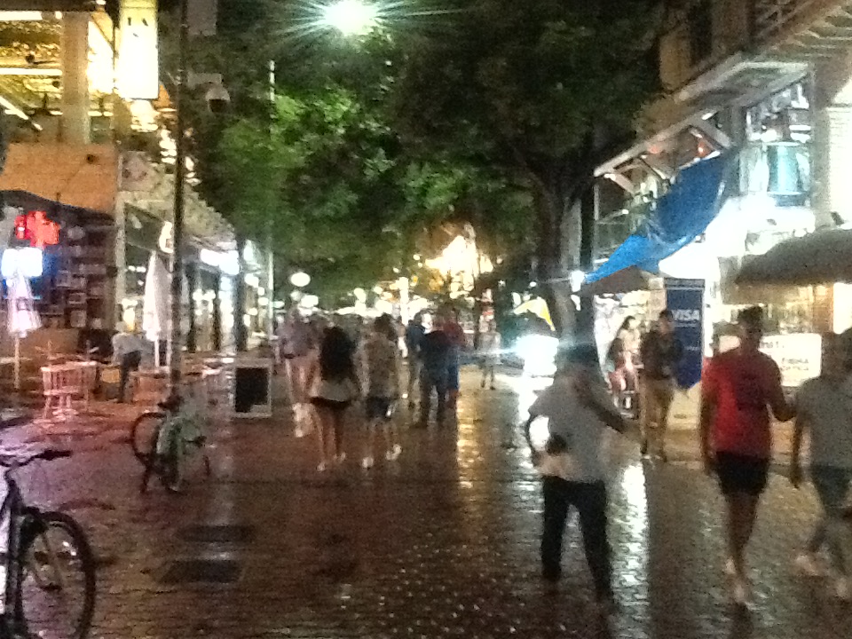 車が通行できずに歩行者天国になっているのが安心で、端から端まで歩くと30分くらいで、沢山のショップが並んでいて散策を楽しむことができます。