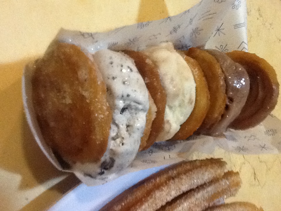 お勧めメニューは、チュロスの生地を揚げてアイスクリーム挟んだものです。