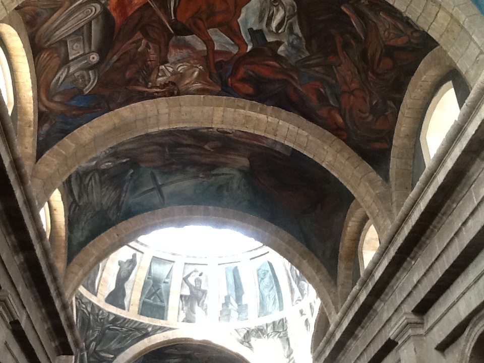 建物自体が立派で見学の価値がありますけれど、有名なのは壁から天井に描かれているイタルゴ神父の絵になっています。