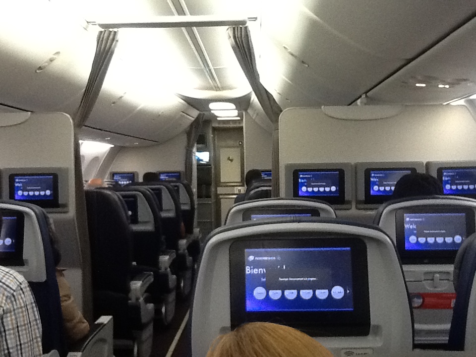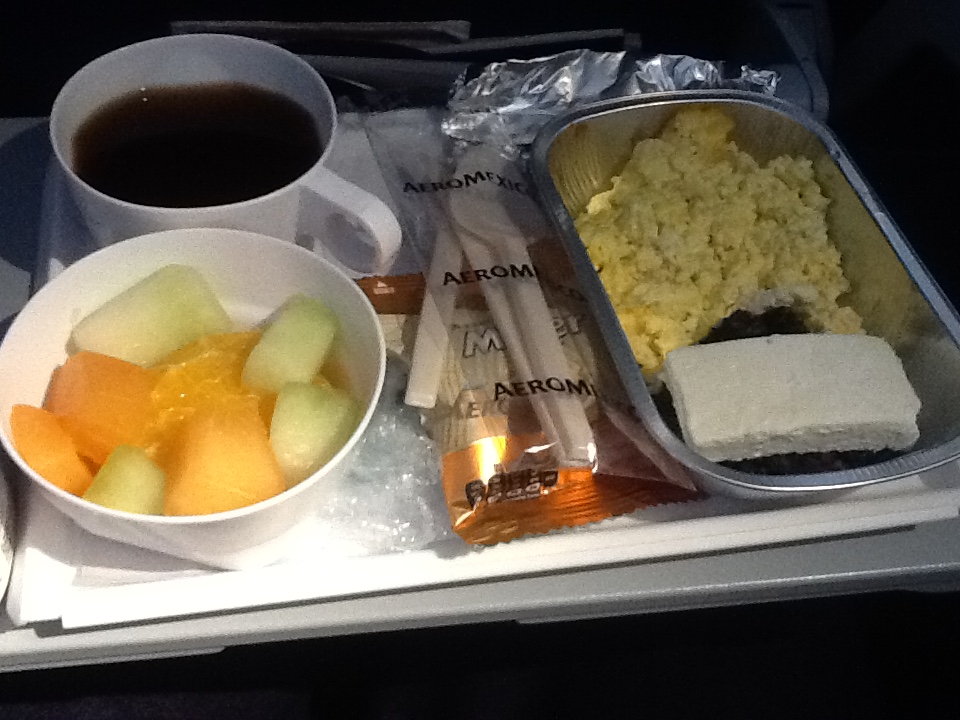 普通の飛行機という感じで、やはりメキシコ人のお客さんが多いのでスペイン語の世界です。5時間弱のフライトでしたけれど、機内食も提供されました。