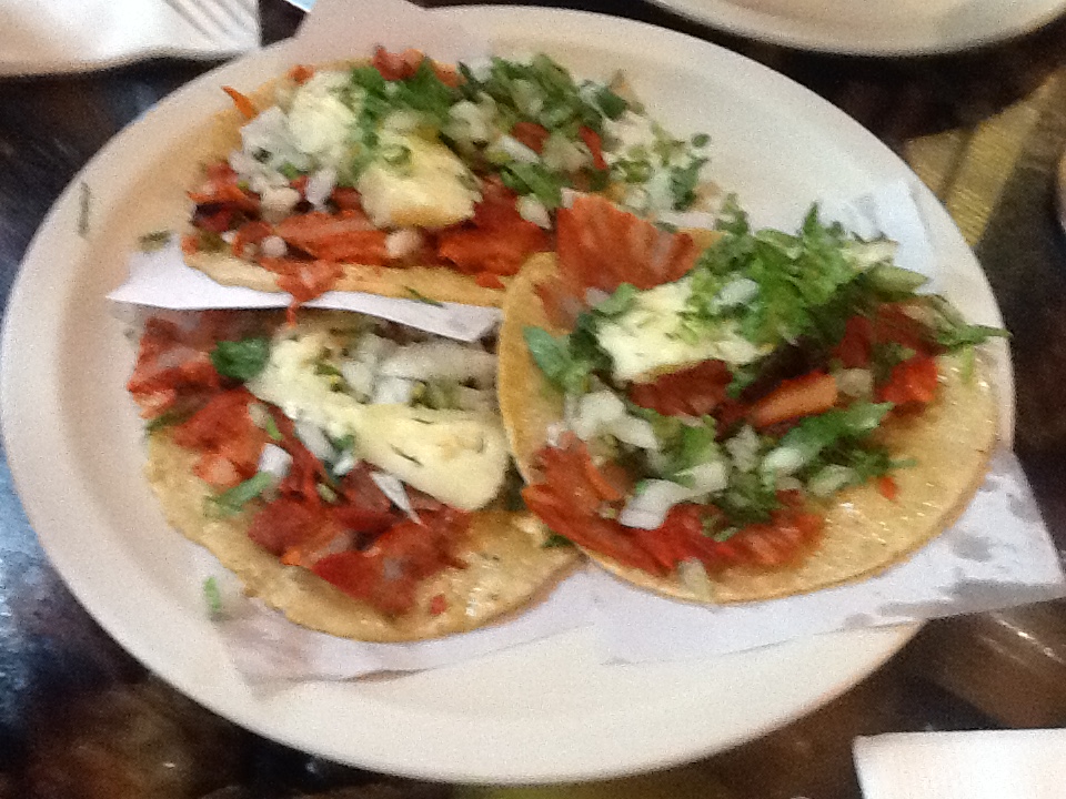 メニューは、色々なメキシコ料理があるのですけれど、メキシコといえばタコスなので注文します。タコスも種類が豊富なので迷ってしまいますけれど、店頭の焼きたてのお肉をスライスしたものを中心にオーダーしました。やはり焼きたては美味しいです。