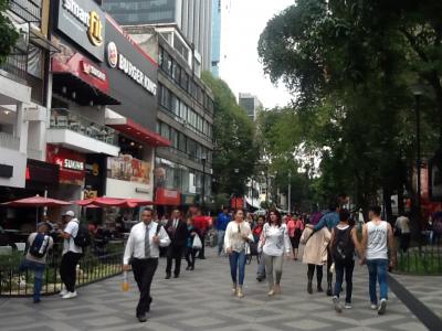 メキシコシティのセントロエリアから離れていますけれど、比較的安心なエリアでレストランとか飲み屋さんなどが多数あります。治安も良さそうなので、散策しながら食事などを楽しむことができます。昼間より夜の街という感じになっています。近代的なビジネスエリアにもなっている地区です。気軽に散策できるので、観光客でも安心して歩けるエリアと思います。日本食のレストランなども沢山ありました。
