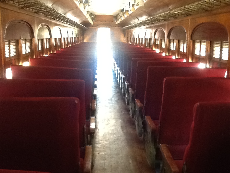 昔の客車、寝台車などがあって、一部の列車の中に入って眺めることができるのです。