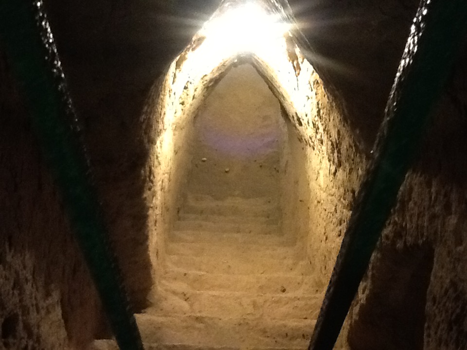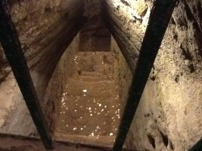 プエブラ近郊のチョルーラの有名なピラミッドの内部を見学をして、出口から順路らしき通路を進むと入り口がいきなりあります。