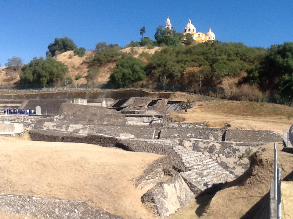 ピラミッドといってもスペイン人に埋められてしまって、その上に教会が建っているので、外から見学するとただの丘という感じなのです。