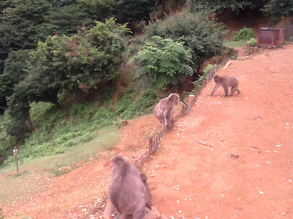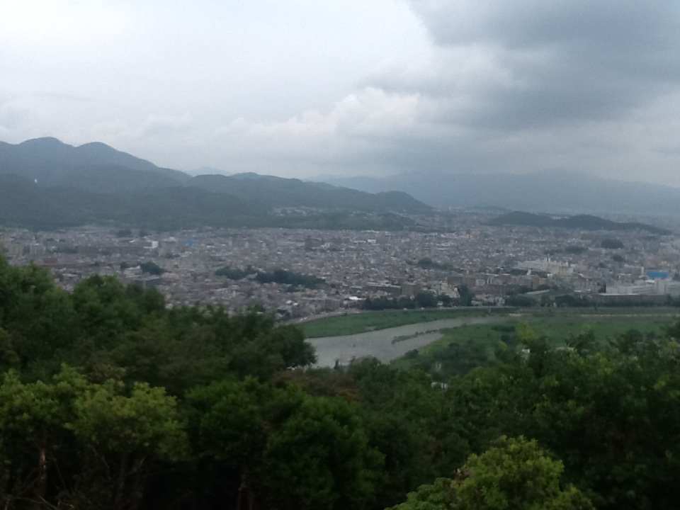 嵐山を散策していたらモンキーパークの看板があったので、訪問することにしました。渡月橋を渡って直ぐのところに入口があって入場料を支払ってから20分ほど山道を歩きました。やがて市内が一望できるポイントがあって、そこにサルの群れがいました。檻に入っているサルと思っていましたが、放し飼いのような状態で自由に動き回っていました。意外な景色で急な道を汗をかきながら登った甲斐がありました。