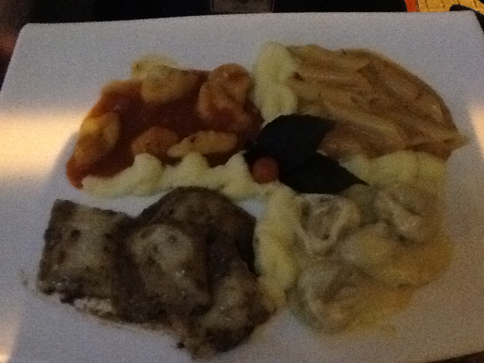 ワインが飲みたかったので、このレストランにすることにしました。人気のレストランでテラスの席が満席なので、少し待ちましたが無事にテーブルゲットです。お料理は比較的上品な味付けで違和感はありませんでした。盛り付けも綺麗でした。お勧め料理は4種類のパスタが楽しめるプレートです。色々なパスタが一皿で楽しめるなんていいアイデアだと思いました。