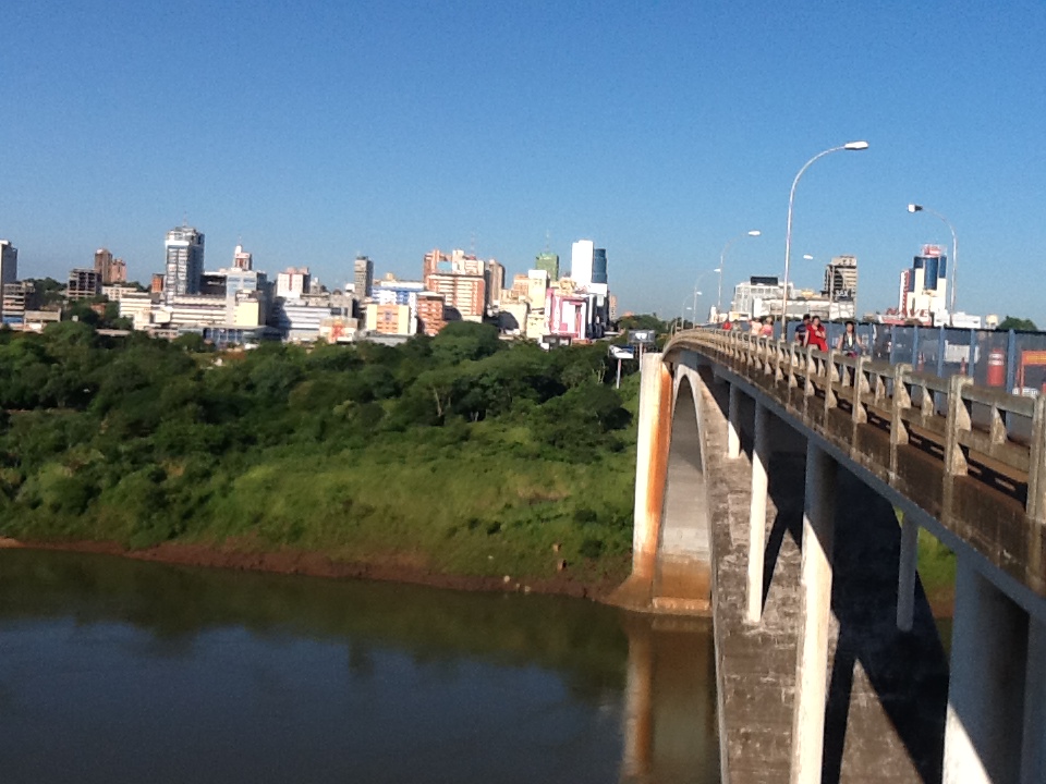 歩いて橋を渡りました。とにかく大混雑しているのでバスなどを利用すると大変なことになってしまいます。そこで歩いて渡ることにしたのです。パラグアイの出国をしてブラジルの入国審査をしました。歩いたの10分ほどで横断できました。歩いて国境越えと貴重な体験をできました。しかし治安があまりよくないので、早朝とか夜中はタクシーなどを利用した方がいいです。早朝、夜中は橋は空いてので。