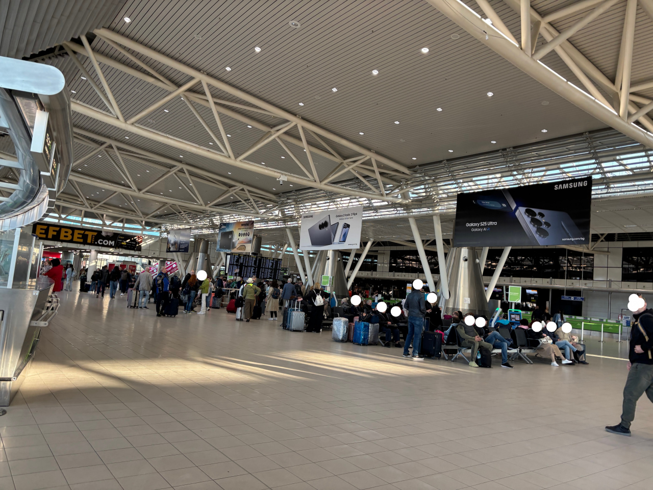 市内の中心から地下鉄を利用して行くことが出来て、地下鉄の駅を出たらターミナルがあるのでアクセスが楽ですね。ターミナルも小さいので、直ぐにチェックインカウンターを見つけることができます。その後は、他の空港と同じようにセキュリティチェック受ければ、直ぐにコンコースです。ゲートの数も多くないので、こじんまりとしています。コンコースには売店やレストランなどもありますけれど、両替所がなかったのが残念です。ですから、お金を使い切って空港に行くか、売店で何かを購入して使い切りという感じになります。ラウンジですけれど、コンコースから下に降りた地味な場所にあります。直前までラウンジに居て、ゲートに向かったのですけれど、ちょっと戸惑いました。搭乗予定のゲートの前にブースがあるのです。何と、こちらで出国審査なんです。誰も居なかったので、スムーズに通過しましたけれど、混雑していたら乗り遅れの可能性もあるのです。ちょっと注意ですね。不思議な空港のシステムでした。