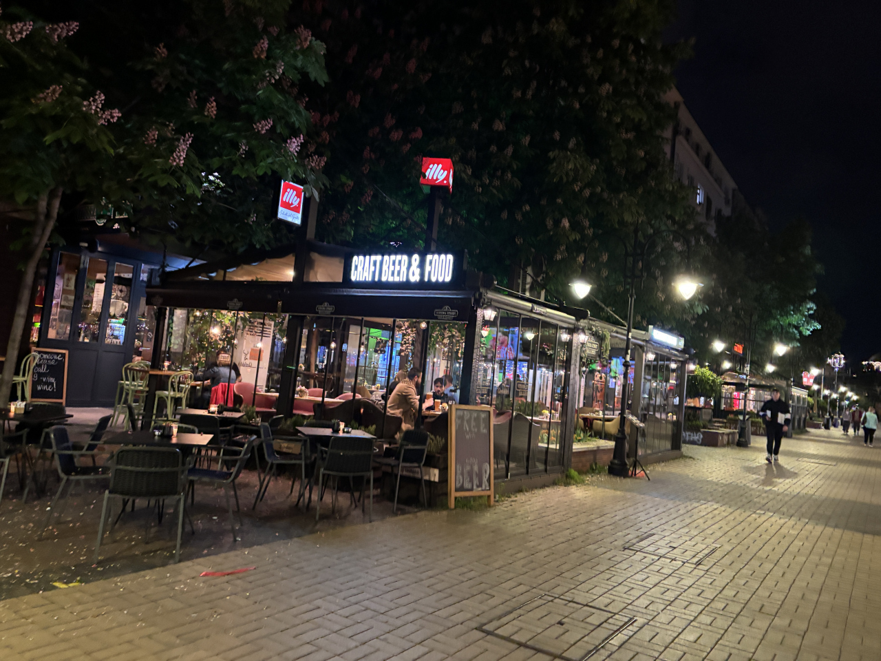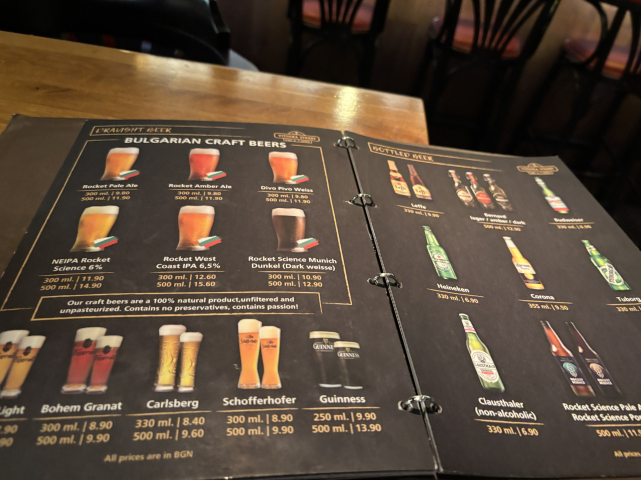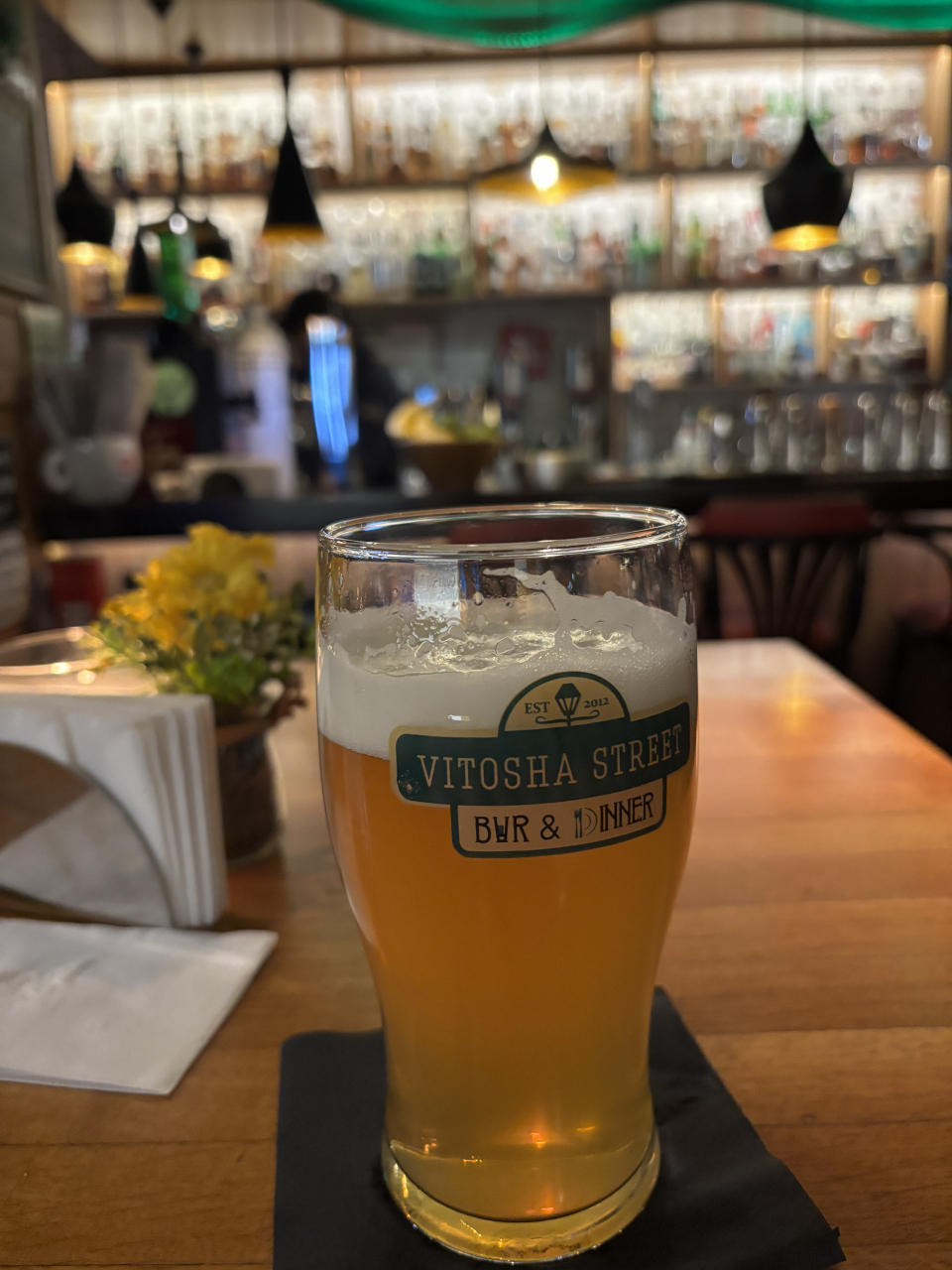 ソフィアの街の繁華街のメイン通りになるビトシャ通りにあるお店です。オシャレなデザインのお店で、テラス席もあります。クラフトビールを提供しているお店で、食事の後に一杯飲むために立ち寄りました。観光客が集まるエリアなので、普通に英語が通じます。色々な種類のクラフトビールがあり、写真が掲載されているメニューがあるので、その中から選択することができます。500ミリのビールを注文したのですけれど、日本でも味わったことがある感じです。価格が観光地価格で一杯1500円くらい。他のお店の3倍という感じですね。この周辺のお店は、ちょっと高めの価格設定になっています。雰囲気はいいです。