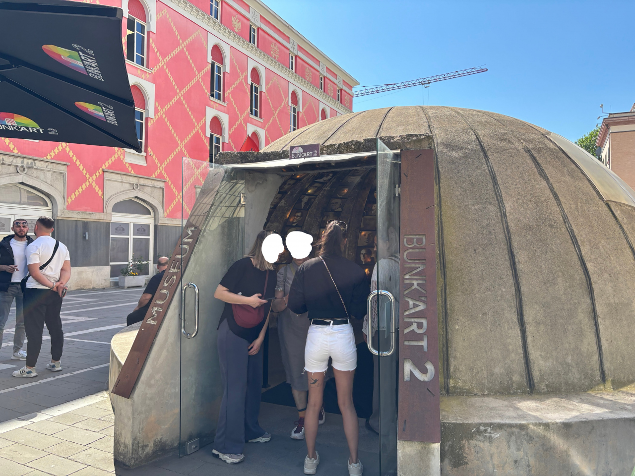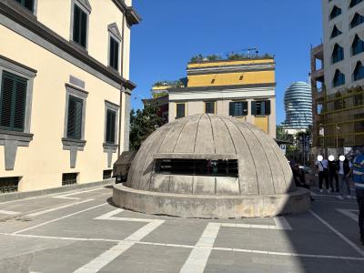 アルバニアの首都ティラナの街の中は、観光スポットがあまりない街ですけれど、その中で貴重な見学スポットになっています。このような施設がアルバニア国内に数えきれないくらいあり、その多くが放置されているとのことです。社会主義時代の独裁者が外国の侵略から守るために造らせた、防空壕のような施設なのです。現在、この施設は、当時の状況に関する展示品があり、観光客に開放しているのです。地下に狭い通路があり、小さいお部屋があり、独裁者による市民の監視、虐殺があった事実などの内容を記した展示室があったり、司令部の名残のような部屋などもあるのです。そんなに規模が大きな施設ではないですけれど、じっくりと内容をチェックすると一時間以上掛かると思います。アルバニアの歴史を知るにも、重要な施設だと思います。