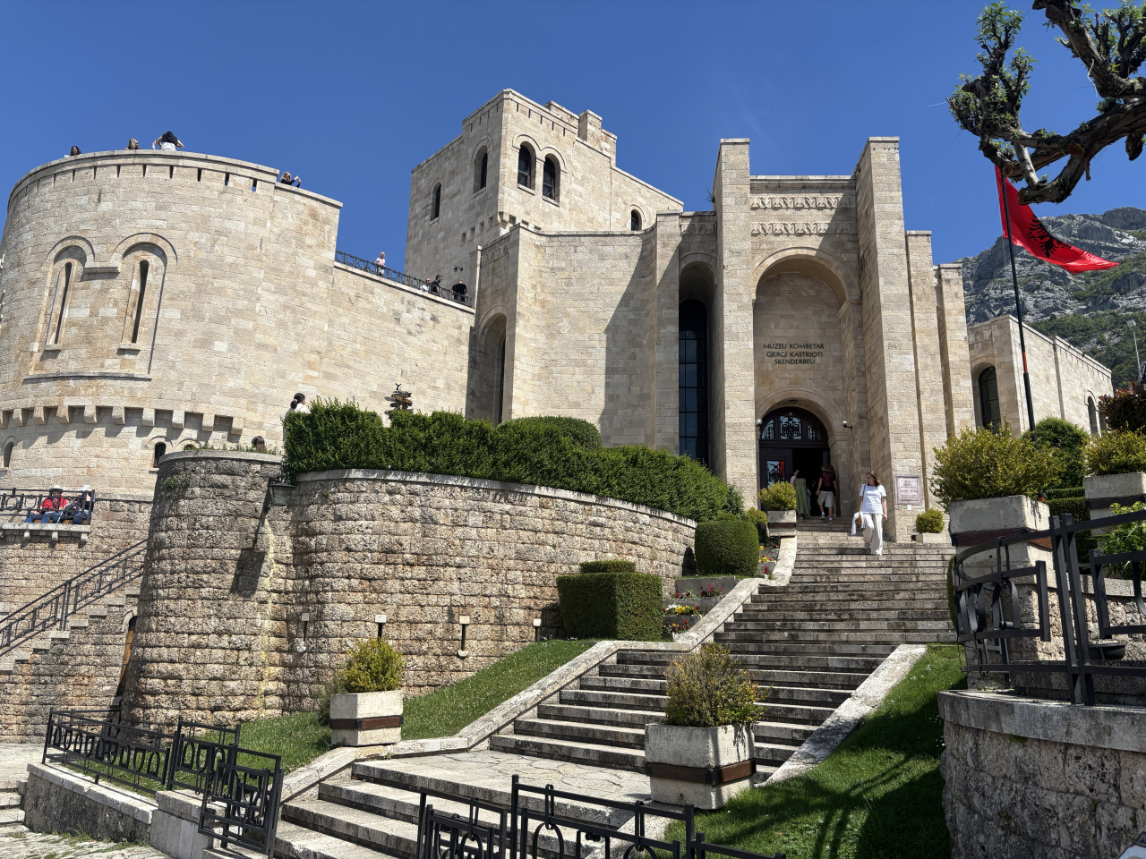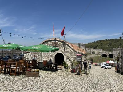 アルバニアの首都ティラナからバスで1時間ちょっとで行くことができる人気の観光スポットです。山の上のエリアにありますけれど、バスを下車して直ぐ観光客向けのレストラン、お土産物屋さんなどが並んでいます。そして、昔の城塞という感じで、城壁などが見えるのです。また、昔のお城を再現した感じの立派な建築物が博物館になっていて、有料ですけれど、館内に入り、バルカンの歴史に関する展示品を見ることができます。また、街の景色を眺めることができるエリアがあり、素晴らしい眺望を堪能することができます。ティラナの街より、こちらの街の見学を優先した方がいいです。時間に余裕があったら一泊して下さい。