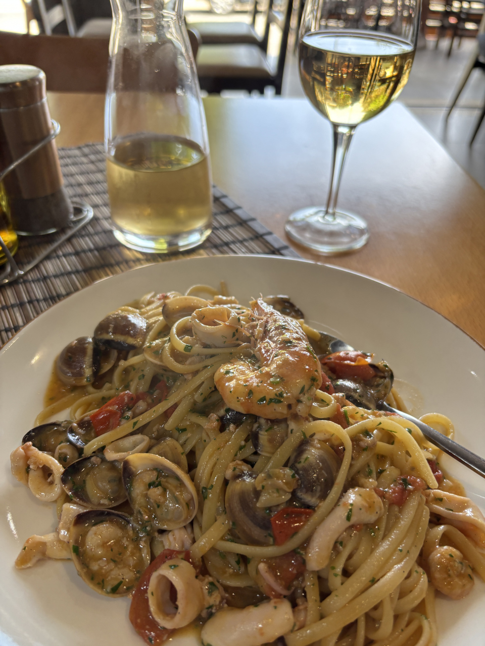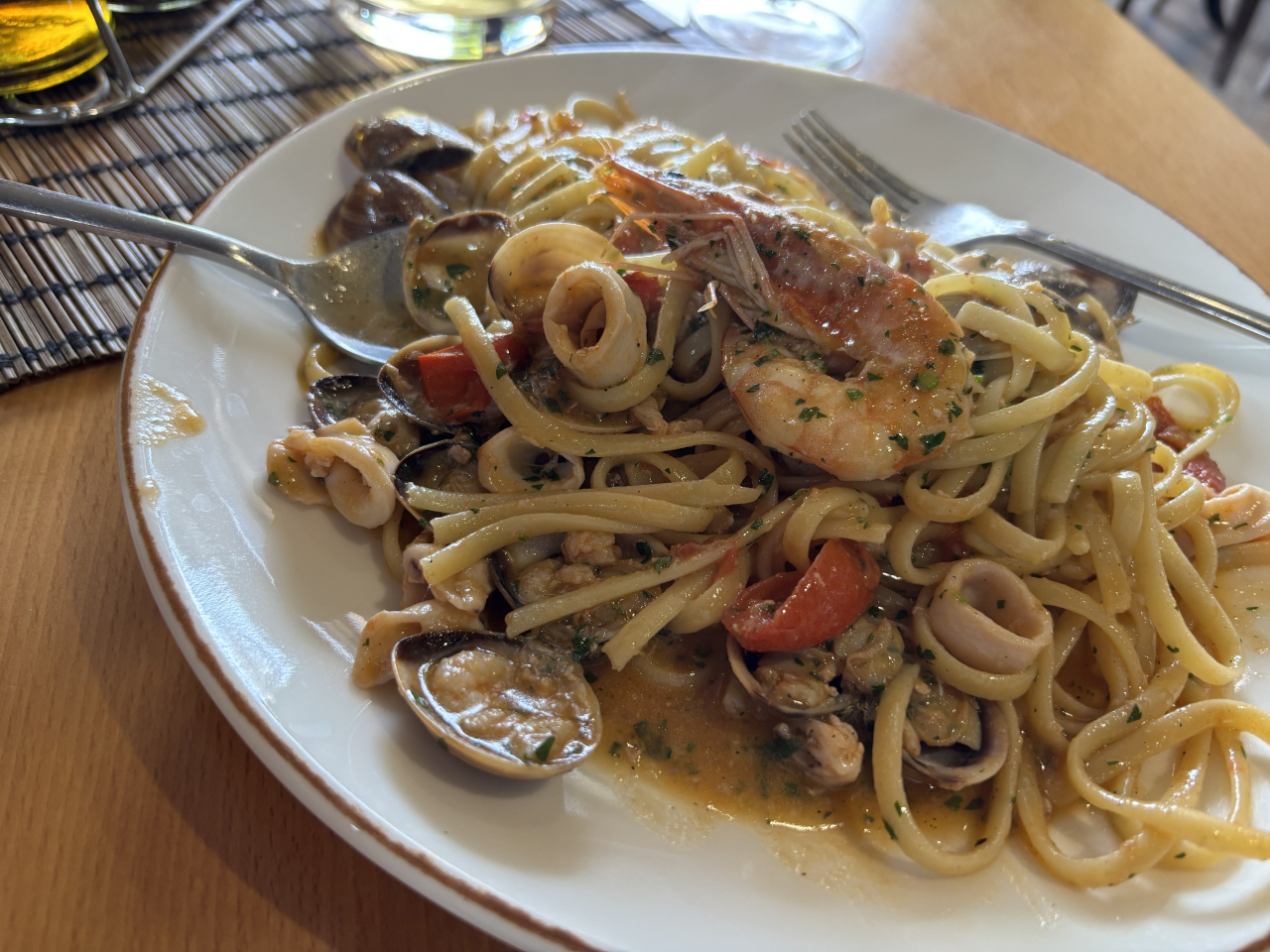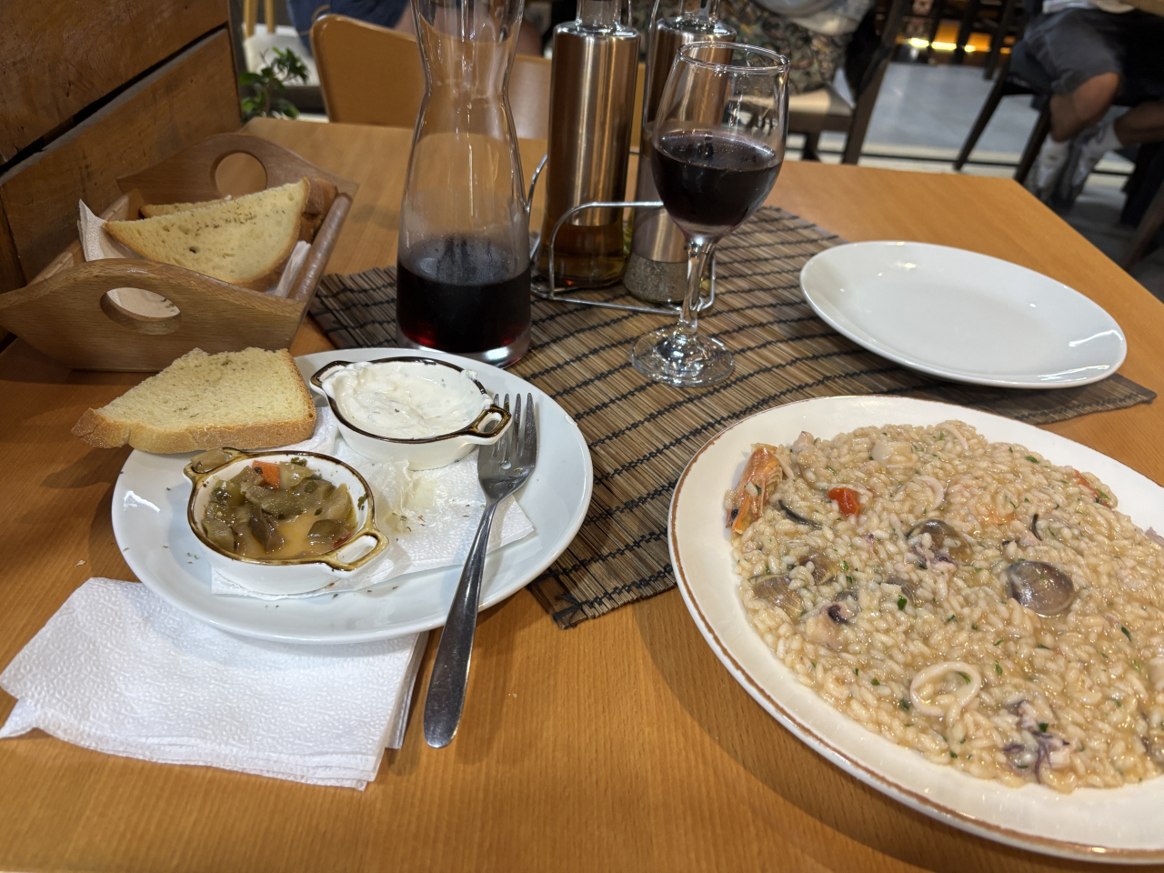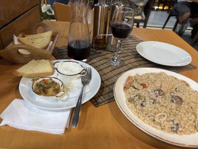 観光客向けのレストランが海沿いに沢山あるサランダですけれど、ちょっと離れた街中にあるレストランです。たまたま、適当に入ったのですけれど、女性のスタッフが笑顔で迎えてくれます。アルバニアのレストランでは、サービスという概念がないスタッフが普通で、何事もスローなのです。さて、料理ですけれど、海沿いの街ですから、シーフードがおススメになりますね。周りの人達もシーフードを注文していました。シーフードリゾットを食べましたけれど、ボリュームに満足。そして、小さいですけれど、魚介類が沢山入っていて、ライスにマッチしているのです。パンまで付いてきます。物価の高い街の中では、リーズナブルな価格なのではないでしょうか。後日、再訪してシーフードパスタを食べましたけれど、こちらも美味でしたよ。