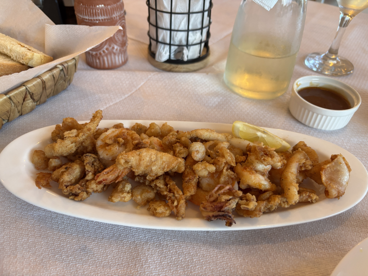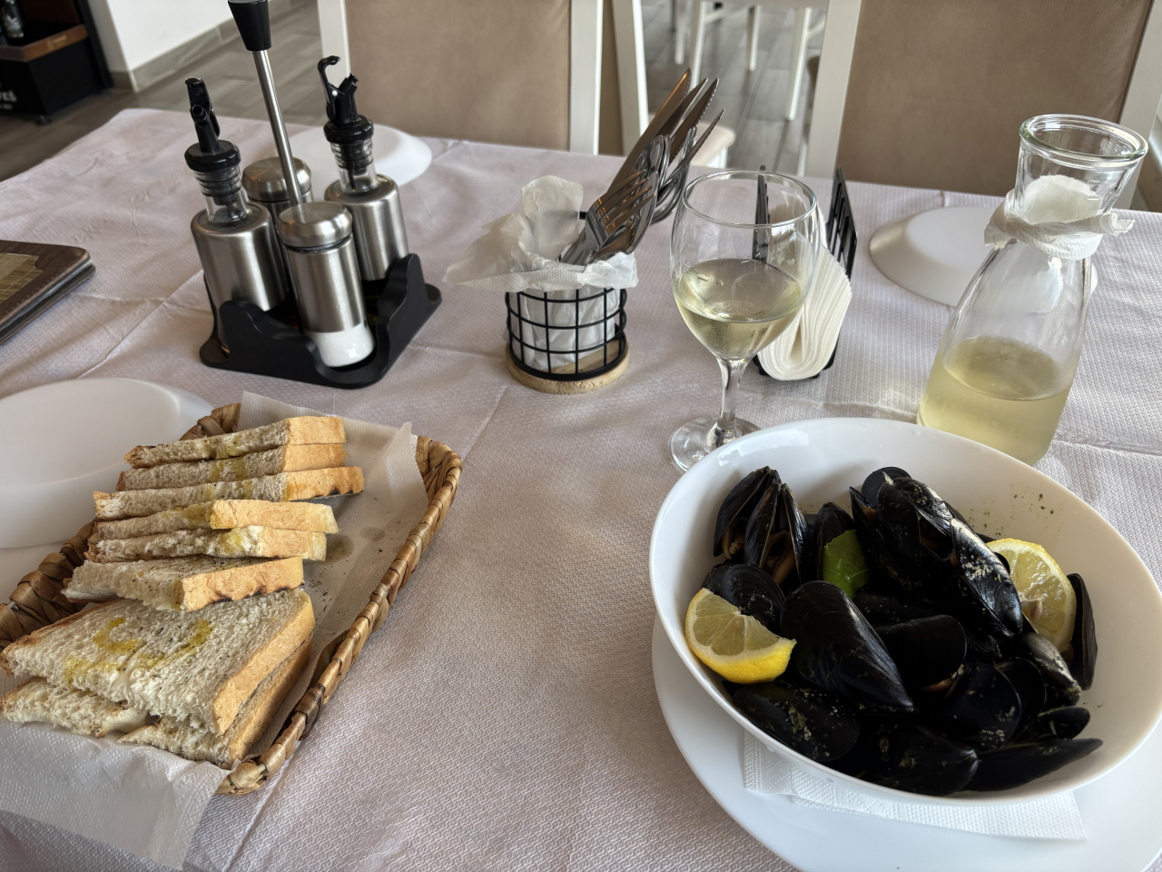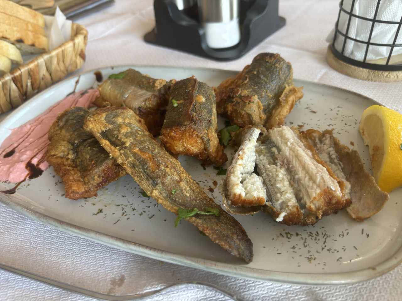 海沿いの街のサランダですから、シーフードを提供しているレストランが沢山ありますが、殆どが観光客向けのお店になります。こちらのレストランは、どちらかというと地元の方向けのお店だと思います。ですから、ロケーションは、あまり良くないです。きつい坂道を上がって行くことになり、ちょっと地味な門構えになっています。テーブルは2階にありますが、入り口に魚が並んでいるので、そちらから選択することもできるのです。さて、メニューの内容は、他のシーフードレストランと同じ感じですね。ムール貝にうなぎを注文です。今まで、ムール貝を注文しても売り切れで食べることができなかったのです。これは想像通りです。うなぎは外国で食べたことがないので、どんな感じで提供されるのか興味があったのです。これは揚げたものが提供されました。歯ごたえがあり意外に美味しかったです。ワインを飲みながら、ゆったりと食事することができました。地元民が利用するので、他のレストランよりリーズナブルでした。後日、再訪して他の料理もトライです。気になっていたフィッシュスープも美味しくいただきました。