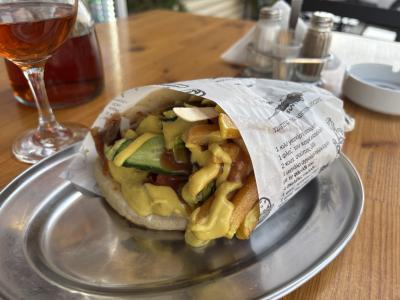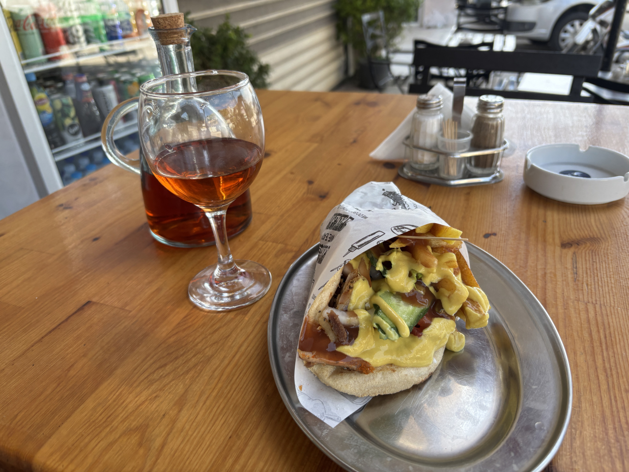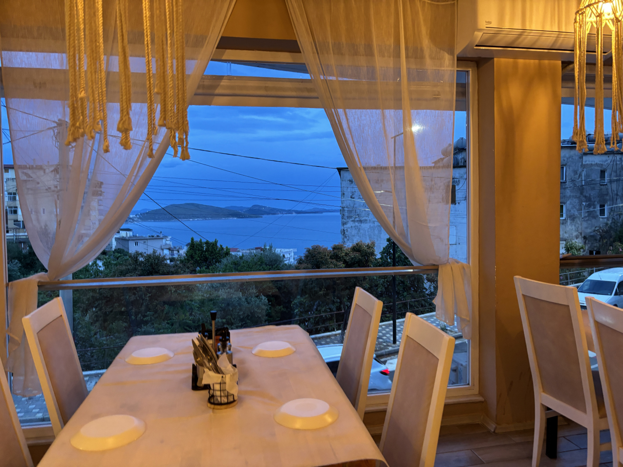 サランダの街の中心の広場から徒歩で15分くらいの場所ですけれど、途中、急な坂道を上がって辿り着きました。アルバニアは、昔のオスマントルコの支配下だった影響もあるのか、トルコ料理のお店も沢山あるのです。気軽に食事できる感じだったので、選択したお店です。スフラキのファーストフードショップという雰囲気になっています。写真付きのメニューがあったので、そちらから注文することができます。中途半端な時間だったので、私以外にお客さんは居ませんが、愛想のいい店主らしき人が笑顔で対応してくれます。シンプルなスフラキを注文しましたけれど、ボリューム満点です。フレンチフライが入っているのです。あまりお肉の味がしません。フレンチフライが入っているからでしょうか?それに大きすぎて食べにくかったです。食べ慣れていないからでしょうか。とにかく満腹になったのでは確かです。ワインも飲みましたけれど、自家製という感じで独特な味になっていました。スフラキだけだったら、4ユーロくらいです。