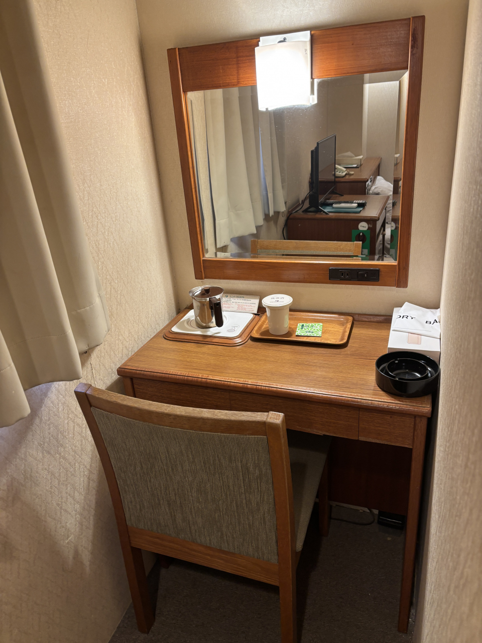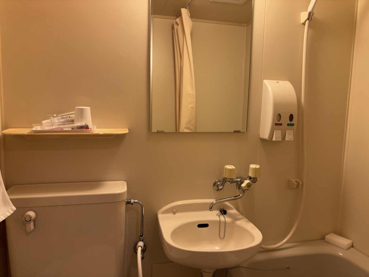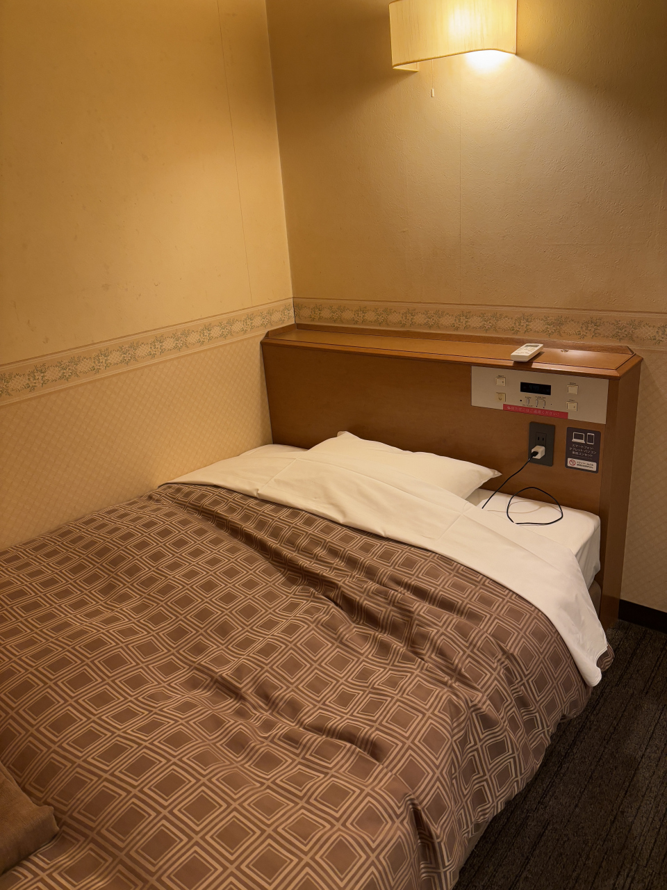 JR成田駅を出ると直ぐの場所にあり、成田空港までのシャトルバスも運行されていて、しかも激安で宿泊することができるので、以前から利用しています。ちょっと早めに到着しましたけれど、清掃スタッフに連絡をしていただいて、お部屋に入ることができて感謝です。古い建物ですけれど、キチンと清掃されていて、やや広めのスペースになっているので、大きなスーツケースを持ち込んでも大丈夫でした。冷蔵庫に無料のお水に炭酸飲料が入っています。他は普通のビジネスホテルという感じですけれど、翌日の出発が早かったので、シャトルバスで空港まで行くことができました。