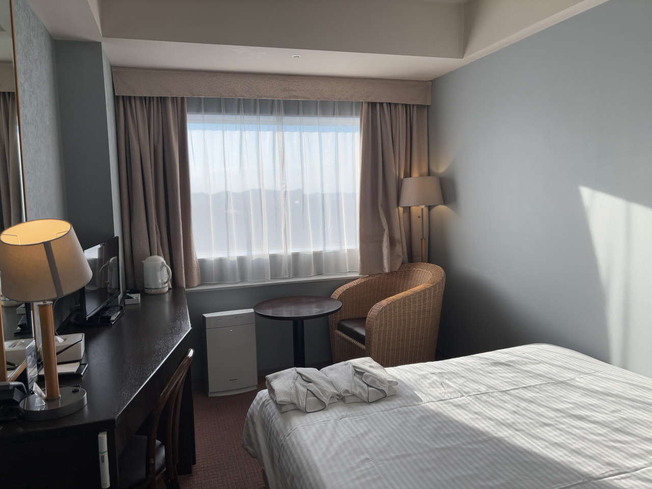 横浜にあるのですけれど、観光エリアになっている、みなとみらいなどから離れているので、立地的には観光客向けではないと思います。みなとみらいのホテルが混雑していて、価格も高かったでの、たまたま利用した感じです。ホテルの周辺は閑散としていて、工場などが多いエリアで、飲食店などは徒歩で10分くらい歩かないとありません。周辺の工場などに用事があるビジネスマンなどが利用する感じでしょうかね。夜は閑散としています。建物の一部を借りて営業している感じのホテル、受付は2階ですけれど、お部屋は高層階になります。お部屋の内部は、普通のビジネスホテルという感じで、セミダブルのベッドでした。コンビニがありますが、閉店するのが早いので注意です。