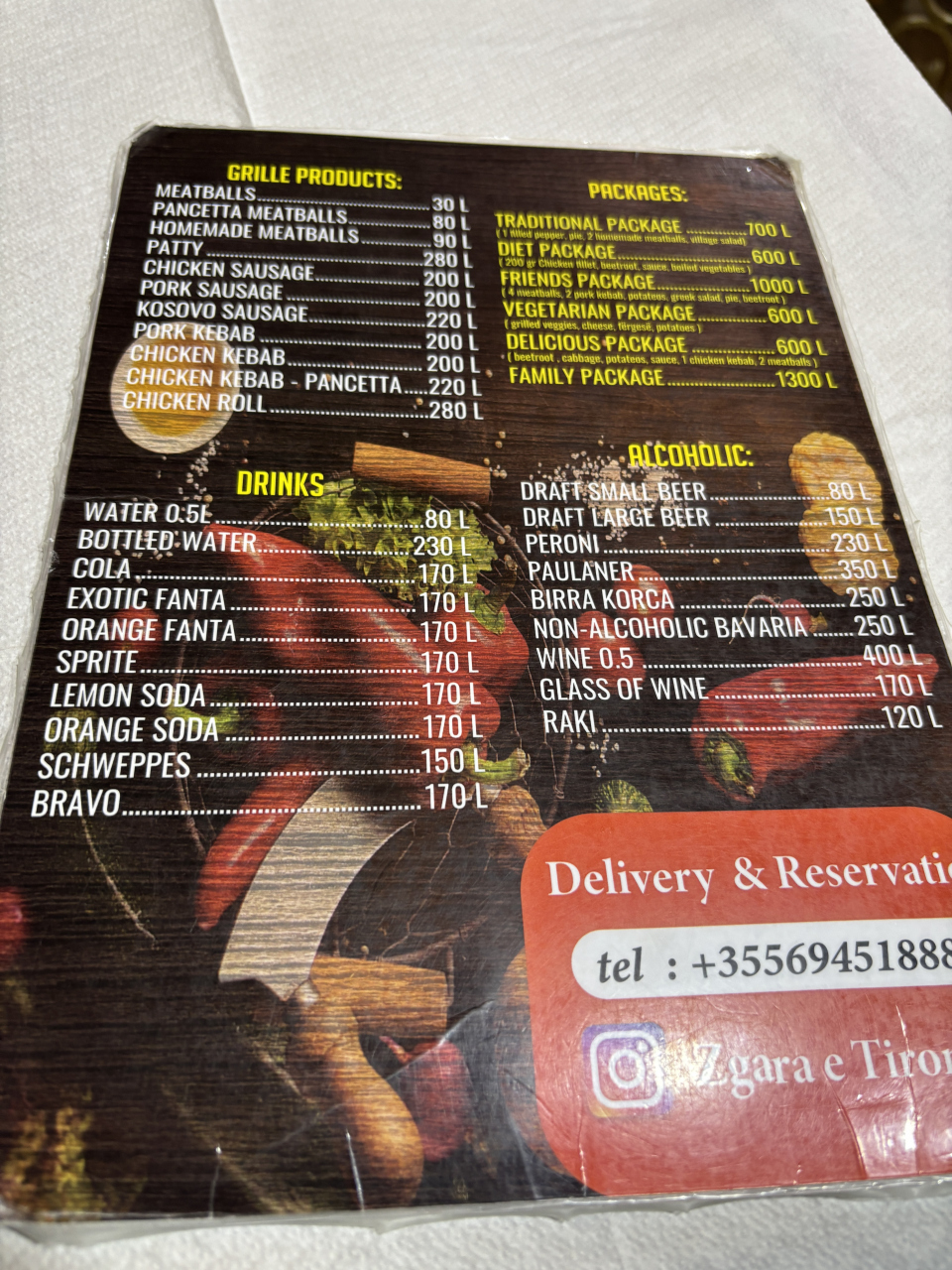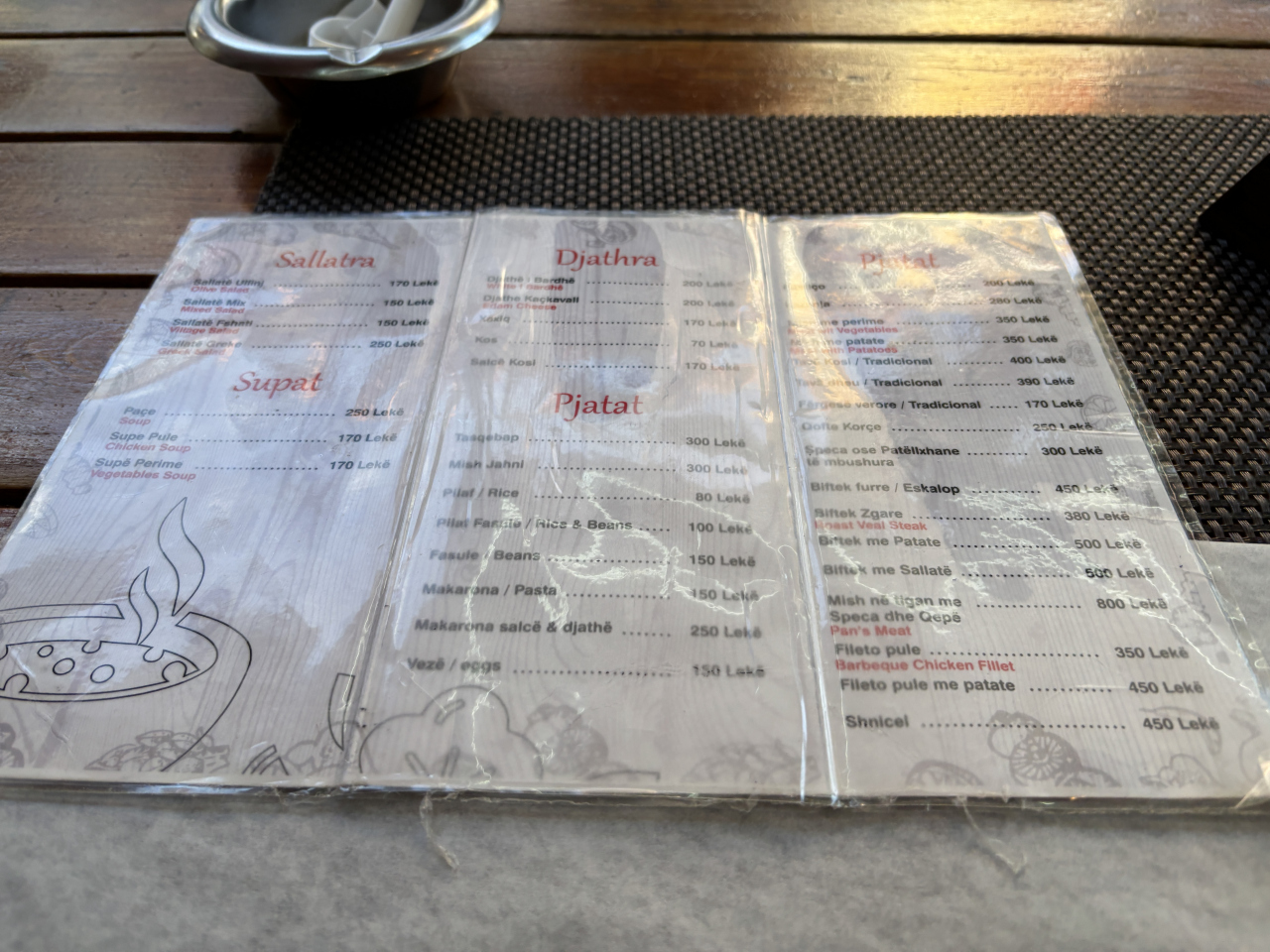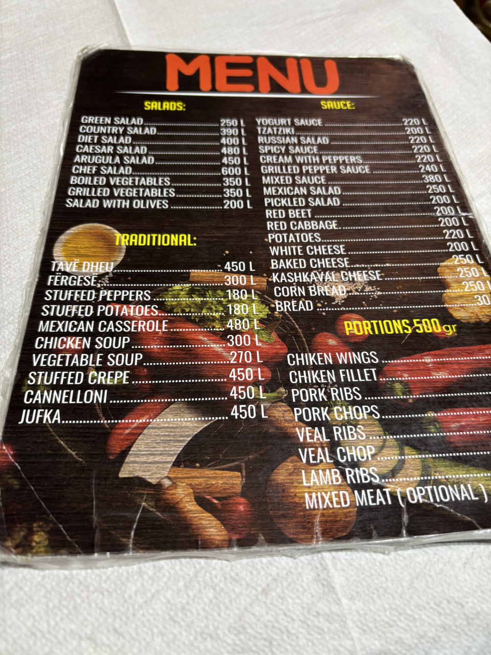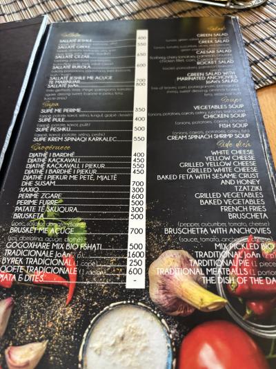 ティラナの街の観光スポットになっているオールドバザールの目の前にあり、観光客向けのレストランですけれど、アルバニアのグルメを提供しています。色々な地元グルメがありますけれど、まだ食べていない料理を選択することにしました。煮込みスープみたいな料理ですけれど、自分の口には合いませんでした。ちょっとコッテリしていてクセがあるスープで、臭いがイマイチだったのです。他に牛タンも食べてみましたが、想像していた食感と違いました。焼肉屋さんの牛タンを想像したのですけれど、料理の方法なのか、歯ごたえがなくて、さらっとした食感でした。焼肉のたれで食べたら美味しいかもしれません。他にも地元のグルメがあるので、アルバニアの料理のトライしたい人にはおススメです。このお店は、アルバニアでは珍しい女性のスタッフが対応して下さるのですけれど、笑顔でスムーズな接客には大満足です。