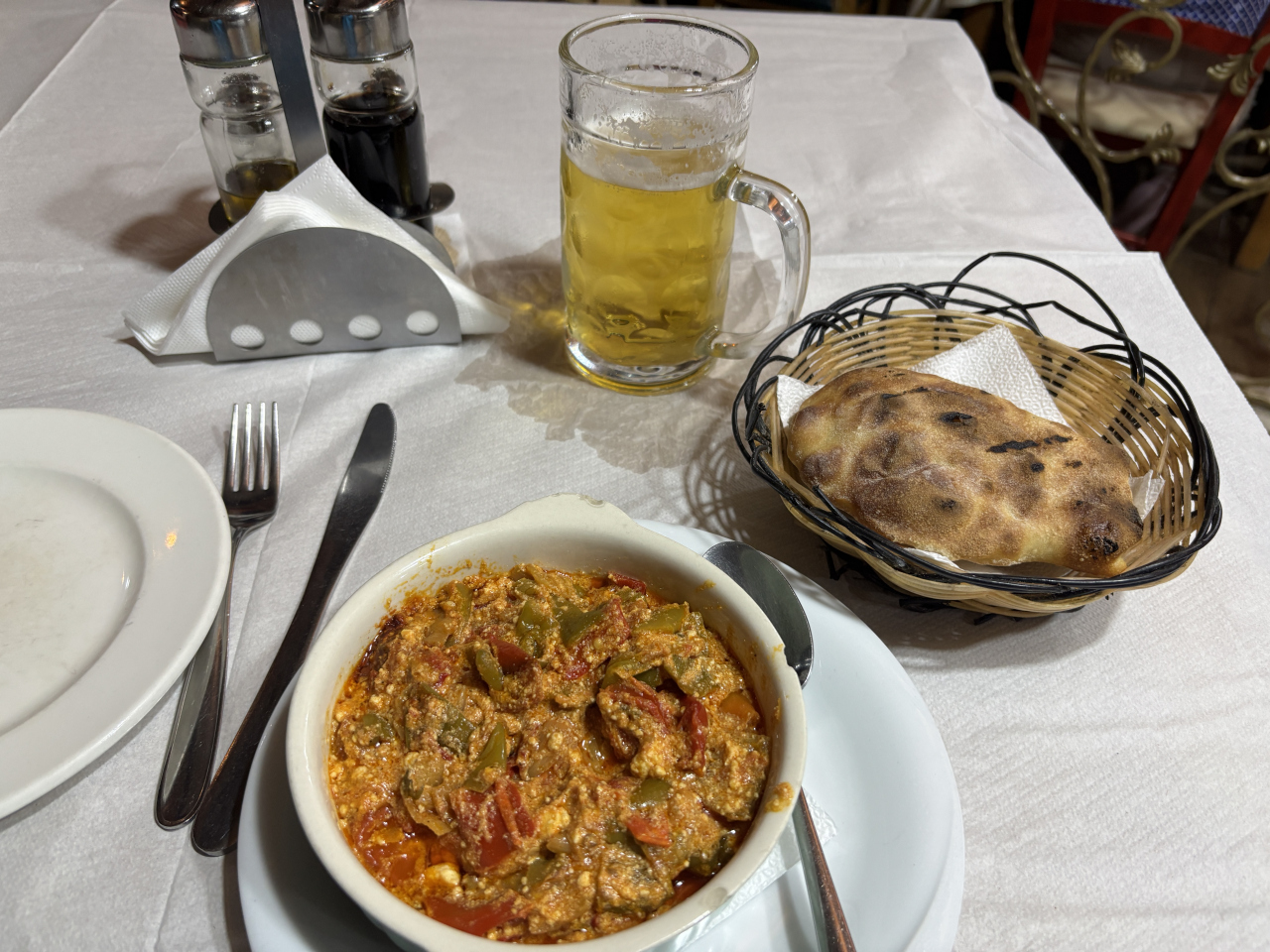 ティラナの街の中心にあるスカンデルベグ広場から徒歩で10分くらいの場所にありますが、観光客向けではなくて、地元の方がメインで利用するお店です。メニューの種類は多くはないですけれど、英語で表示されたメニューがあり、有名なアルバニア料理が並んでいるので、地元のグルメを堪能することができました。まだ、旅行中に食べていないアルバニア料理を注文してみました。煮込み料理を選択したのですけれど、これが大ヒット。チーズと野菜が入った煮込みですが、コクがあって美味なのです。ビールに合いました。庶民的ですけれど、お店の雰囲気もいいですし、スタッフの方の対応も良かったです。ちょっと入るのに勇気が要るかもしれませんが、アルバニア料理を食べたい人に一押しのレストランだと思います。