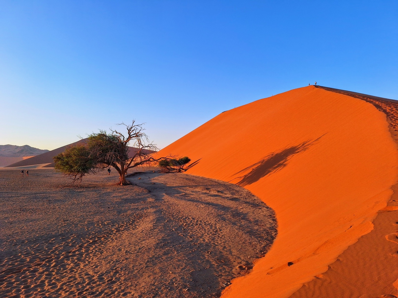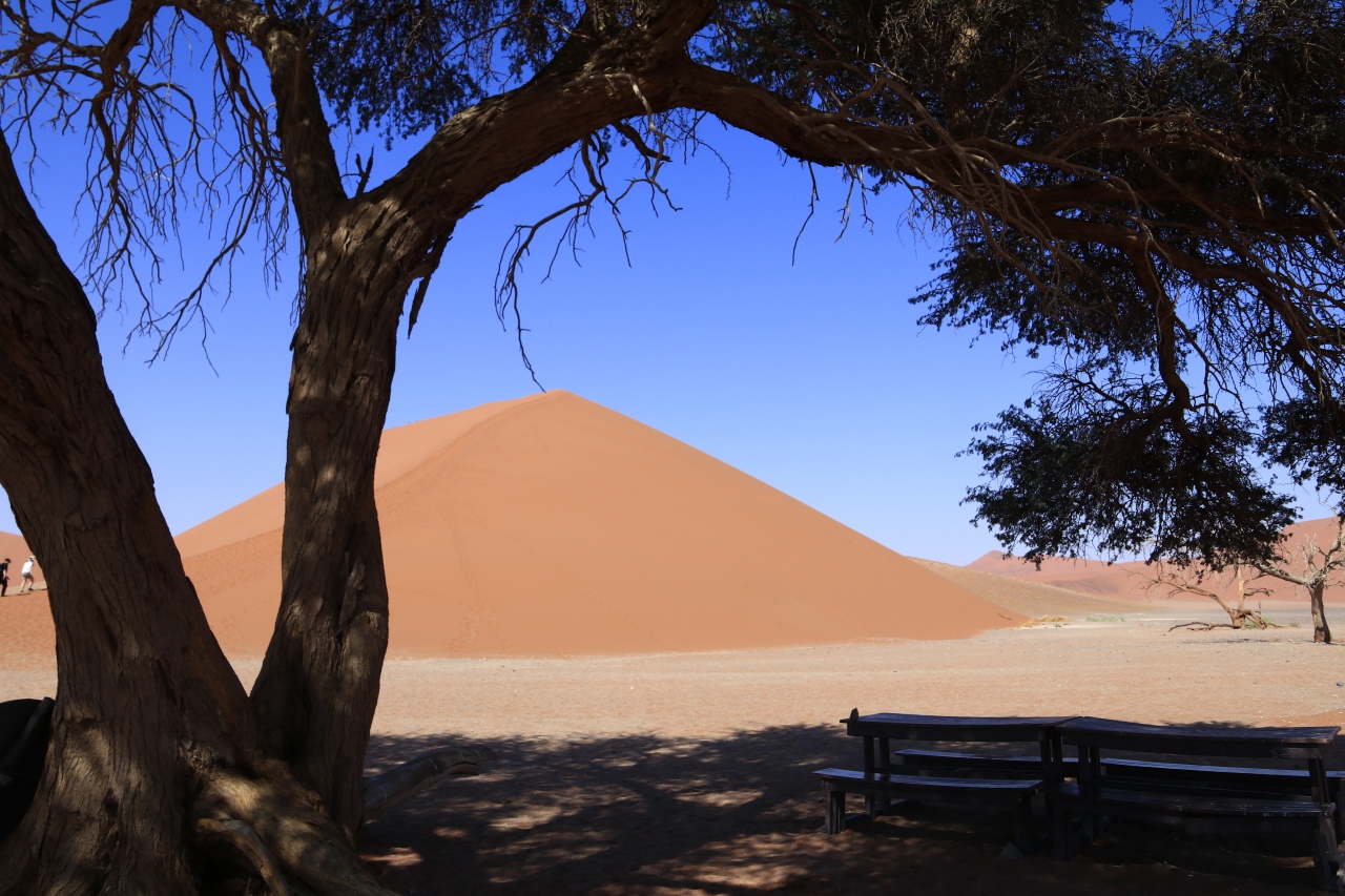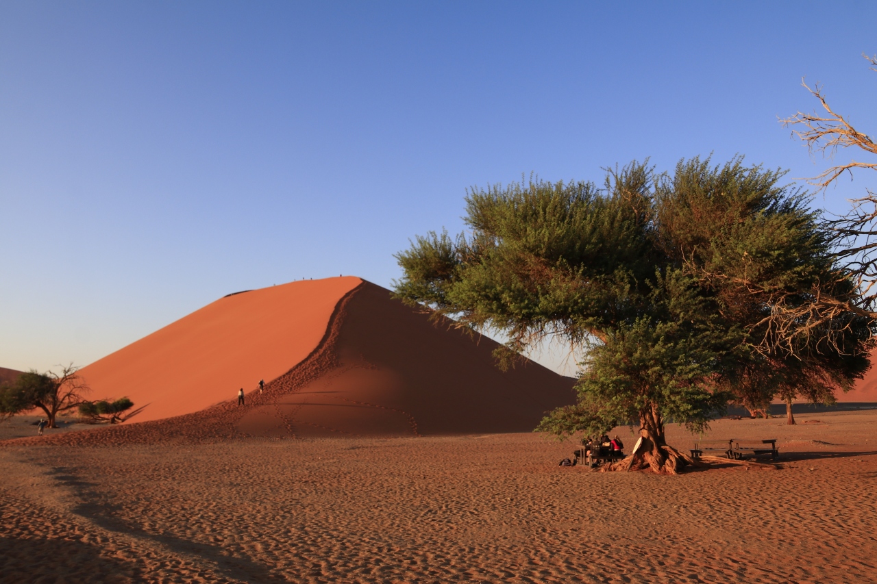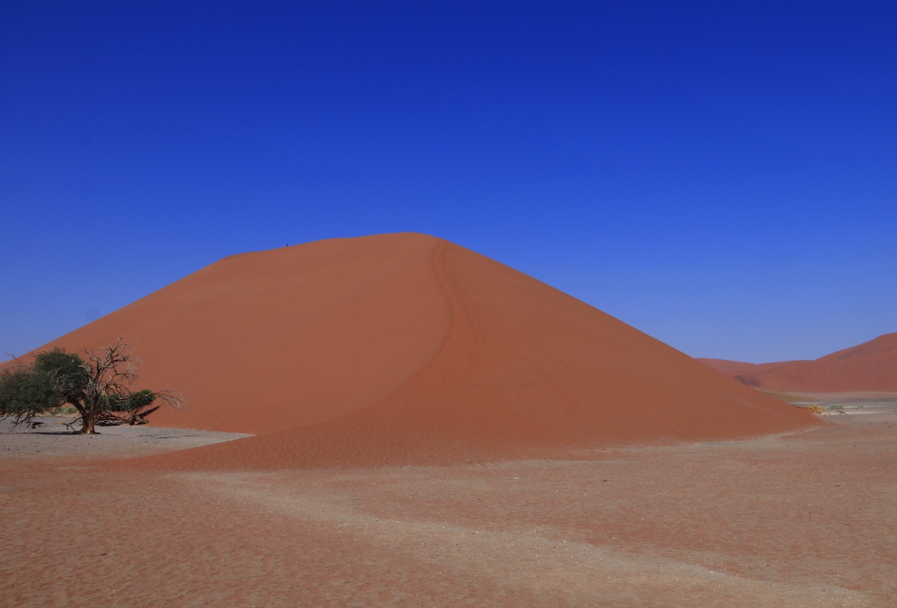 名前の由来は、ナミブ砂漠の入口から45マイルの場所にあるというある意味記号のような名前ですが、それが人気が出たのは砂丘の形が美しく、赤っぽい砂漠の砂の色と合わせ、特に朝日を浴びた砂丘の陰影が絵画のように素晴らしいからです。